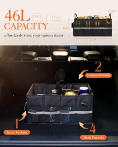 FORTEM Car Trunk Organizer, Collapsible Multi Compartment SUV Organizer, Foldable Storage for Car Accessories for Women Men, 600D Oxford, Non Slip Bottom, Securing Straps, Soft Cover (50L)