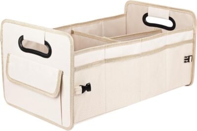 JiatuA Car Trunk Organizer, Car Organizers and Storage Collapsible Multi Compartment Container Box, Adjustable Car Accessories for SUV Sedan Truck, Standard Size, Beige