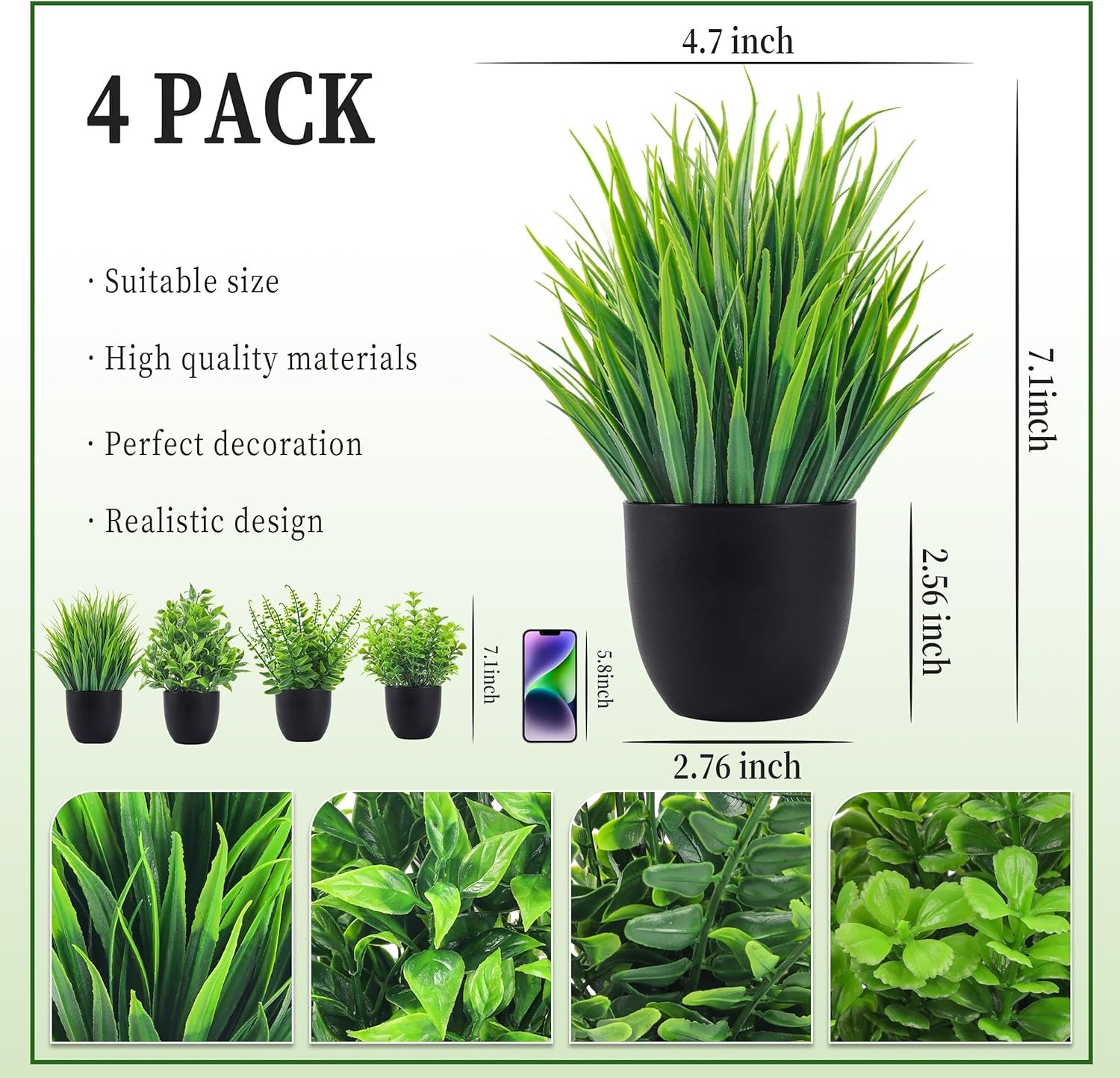 Der Rose Fake Plants 4 Packs Artificial Plants Small Faux Plants Black Bathroom Accessories for Halloween Bathroom Home Kitchen Coffee Table Office Desk Decor Indoor