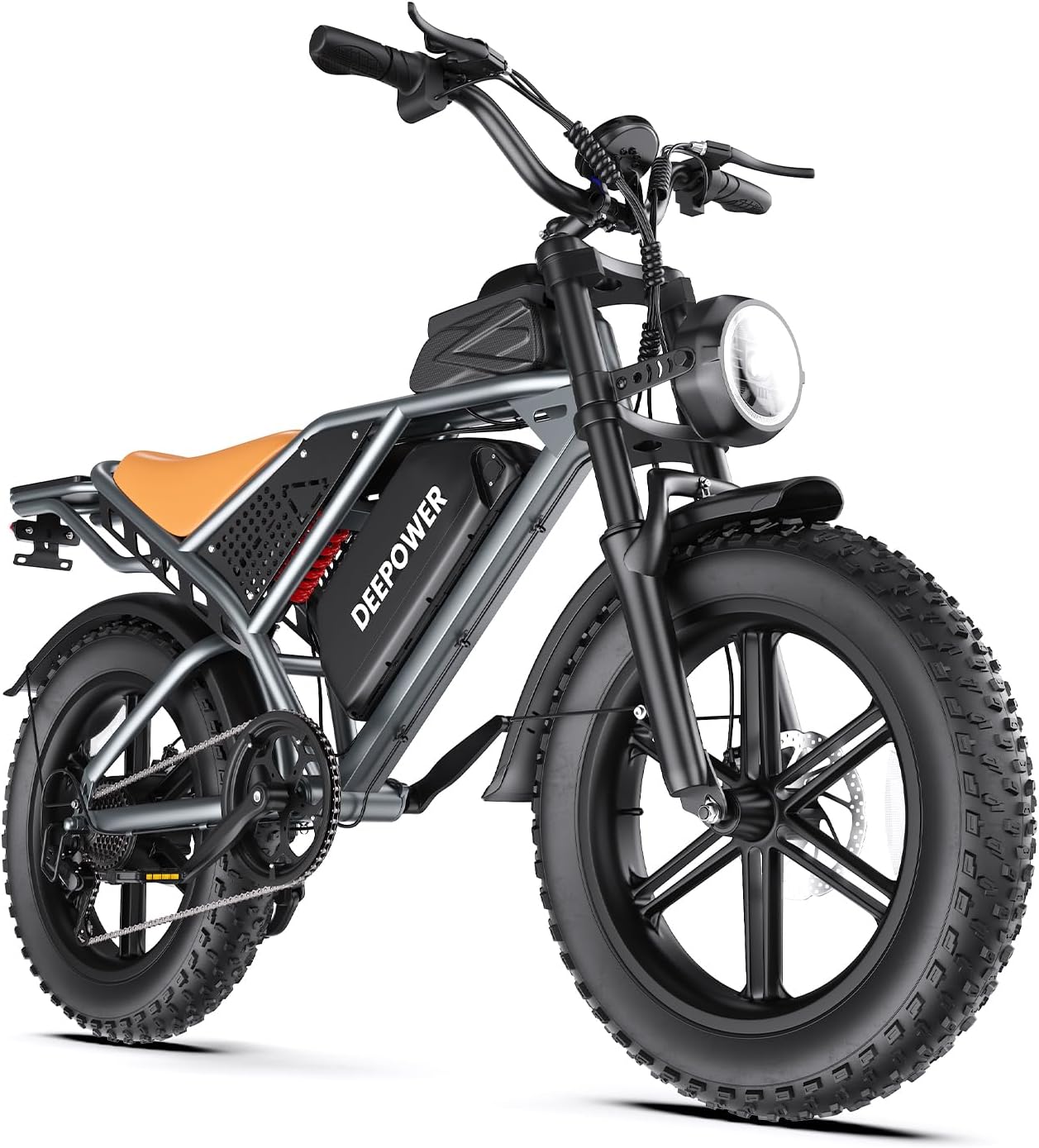 DEEPOWER Electric Bike for Adults,1500W/3500W Peak Motor,30MPH Electric Bicycle,48V 20AH/35AH/60AH Battery,35-180 Miles,20" Fat Tire Ebike, Shaman0 7-Speed Electric Dirt Bike
