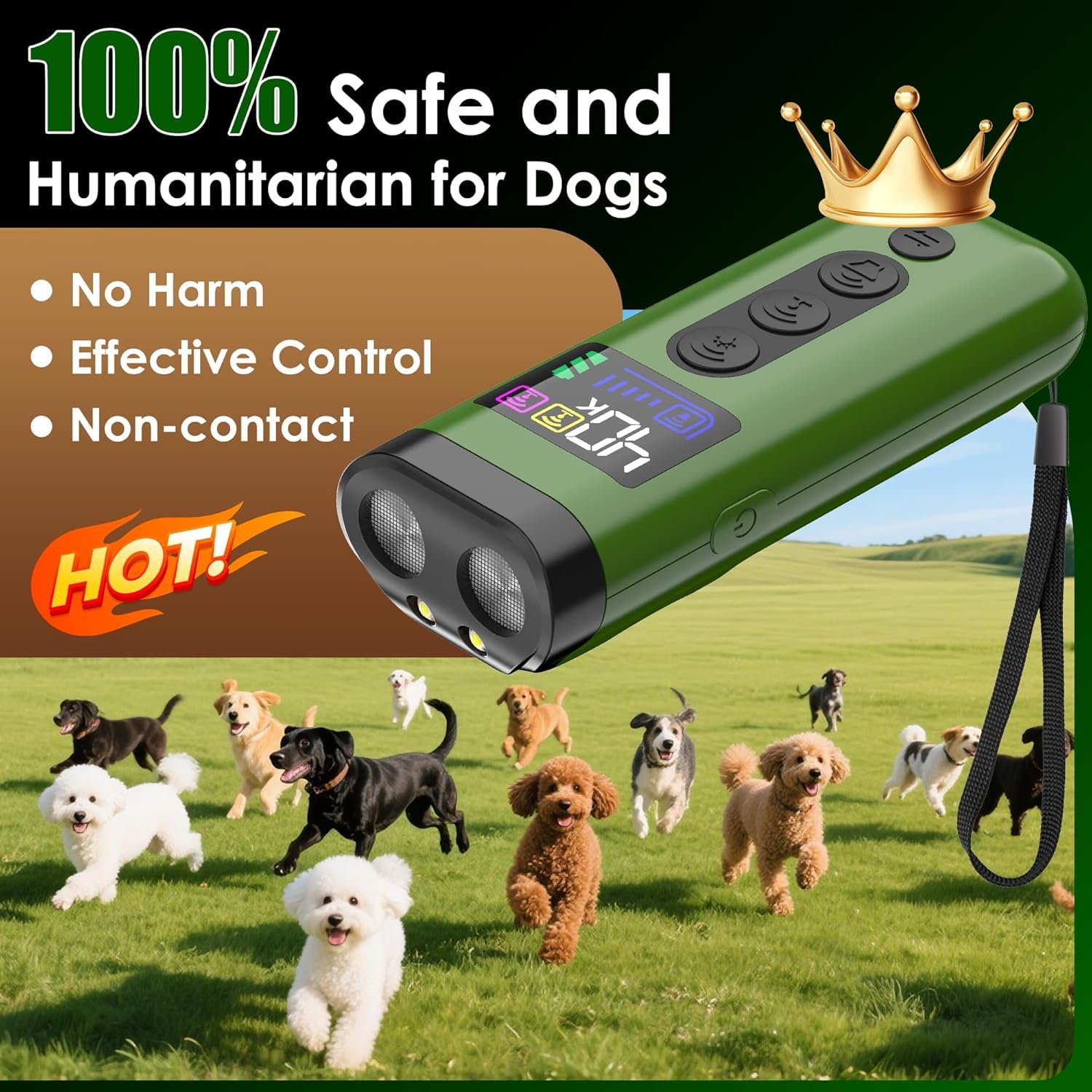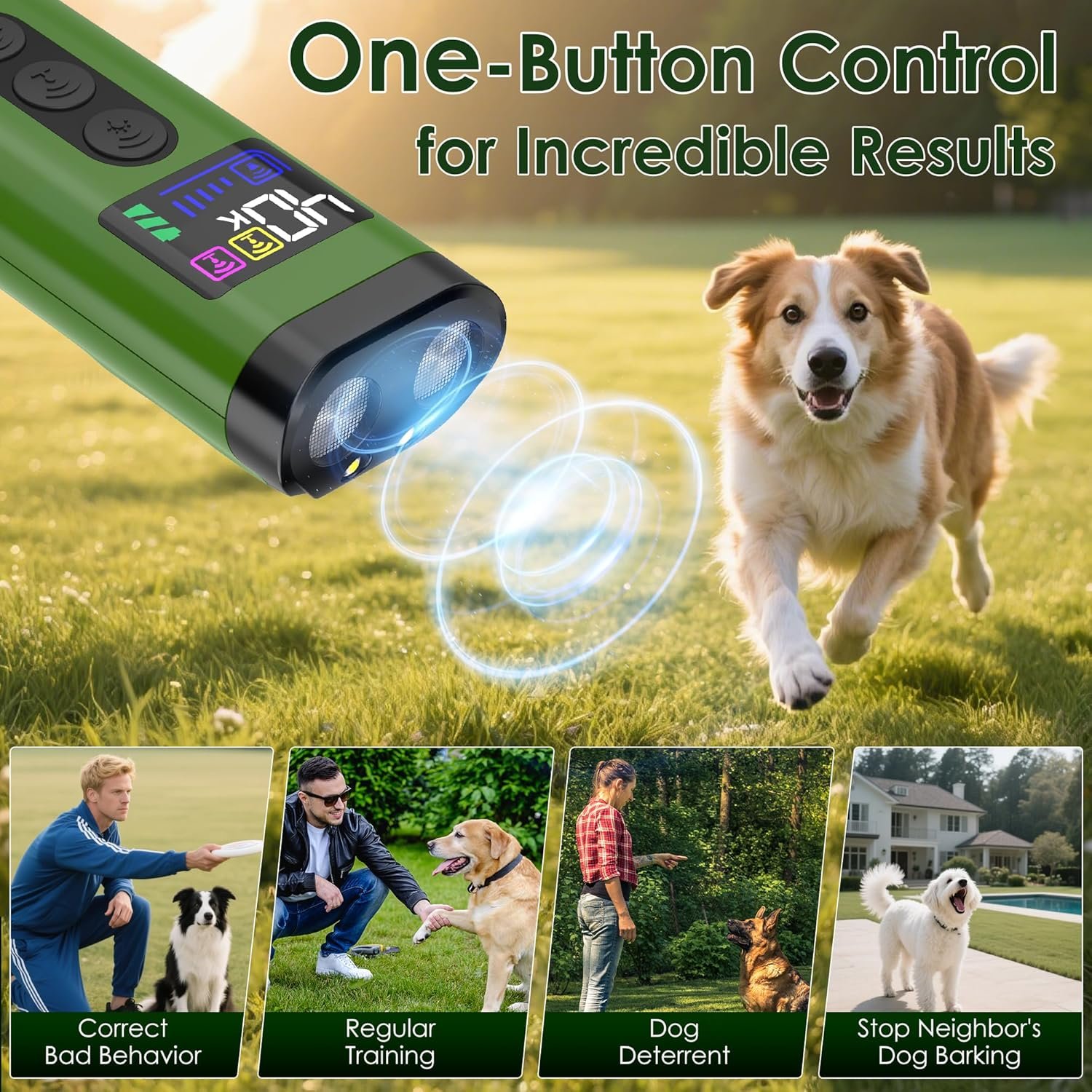 Dog Bark Deterrent Device, 65 FT Range,3X Ultrasonic Bark Deterrent Device & Ultrasonic Dog Trainer – Anti-Barking Device with Color Display, Safe & Effective Alternative to Bark Collars – Green