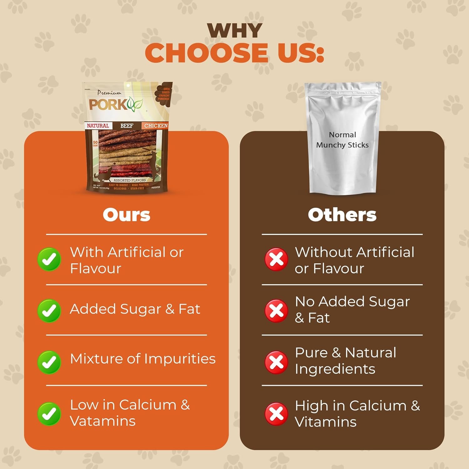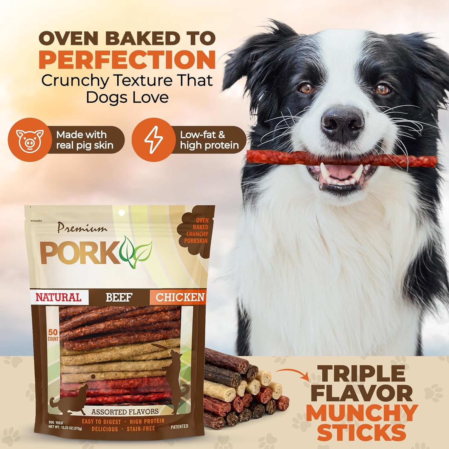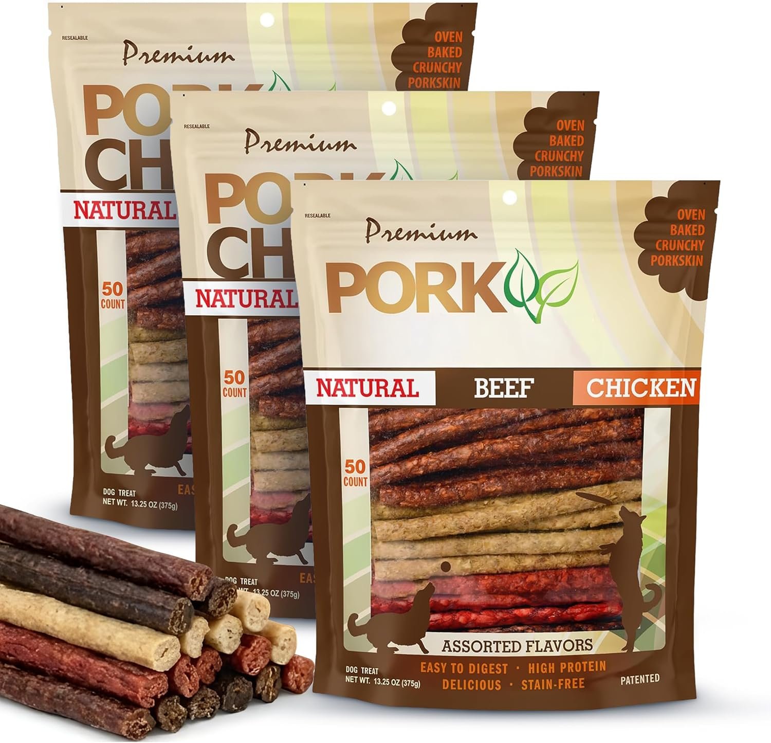 Dog Chews, 5-inch Munchy Sticks, Assorted Flavors, 50 Count (Pack of 3, Total 150 Counts), with Natural, Beef and Chicken Flavor, High Protein Dog Treats, Including Microfiber Cleaning Cloth
