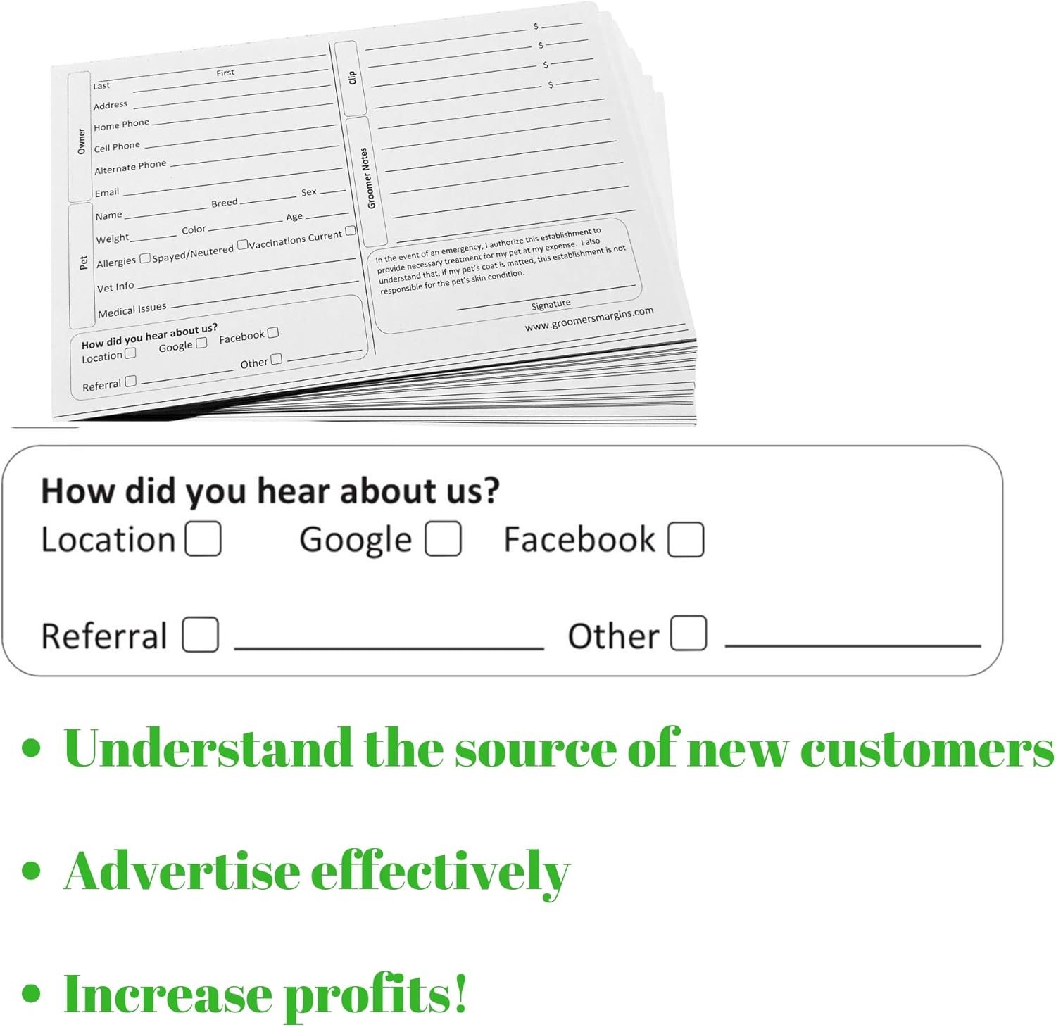 Dog Grooming Cards 5X8 Inch (100 Pack 8 X 5 inch) Groomer Client Profile Service Record Clip Card for Professional Pet and Cat Groomers, Kennel Care
