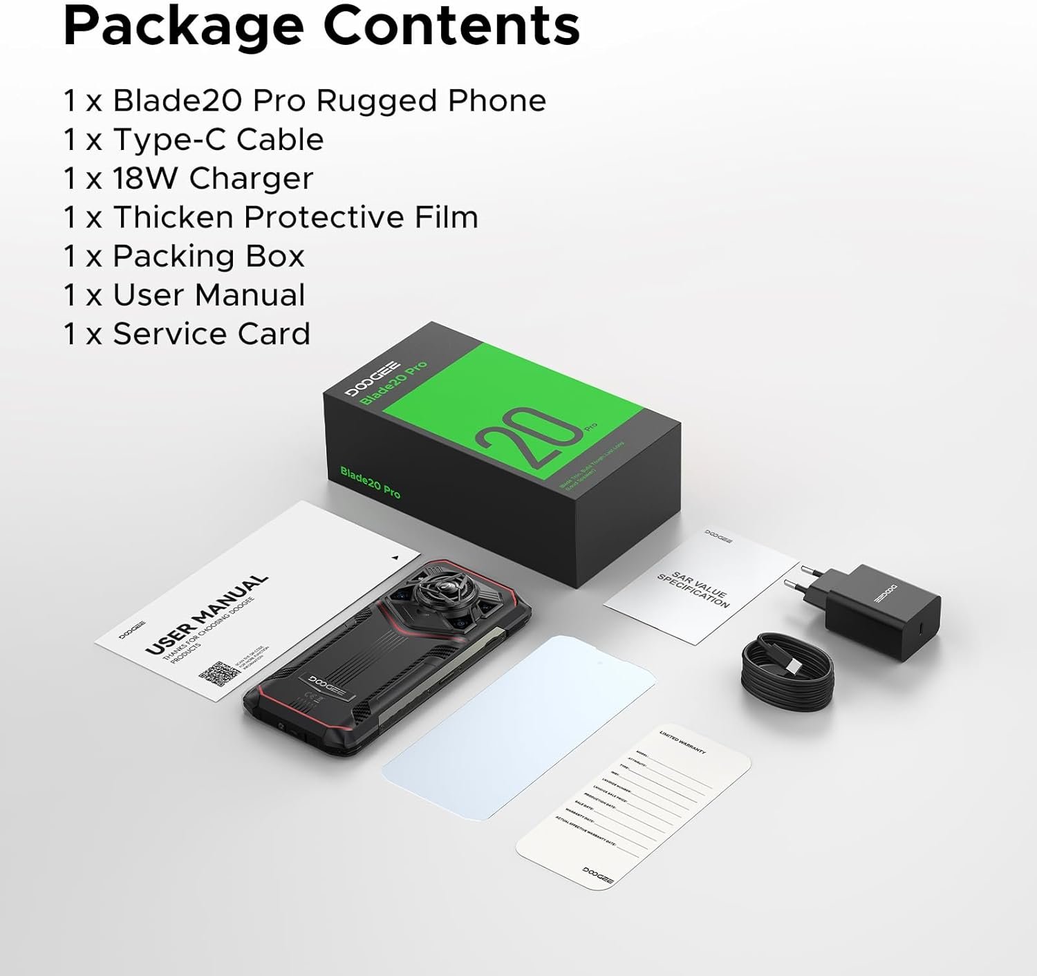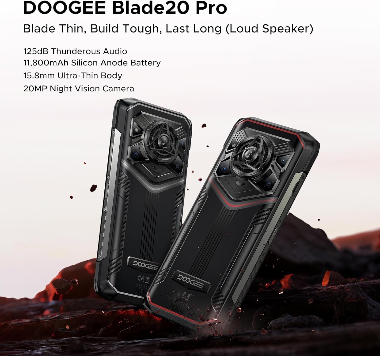 DOOGEE Blade 20 Pro Rugged Phone Unlocked,Android 15,Octa Core,24GB+256GB,11800mAh Rugged Smartphone with 125dB Speakers,6.6″ HD Display,50MP+Night Vision Camera,Face ID/Fingerprint/NFC/WIFI6/OTG