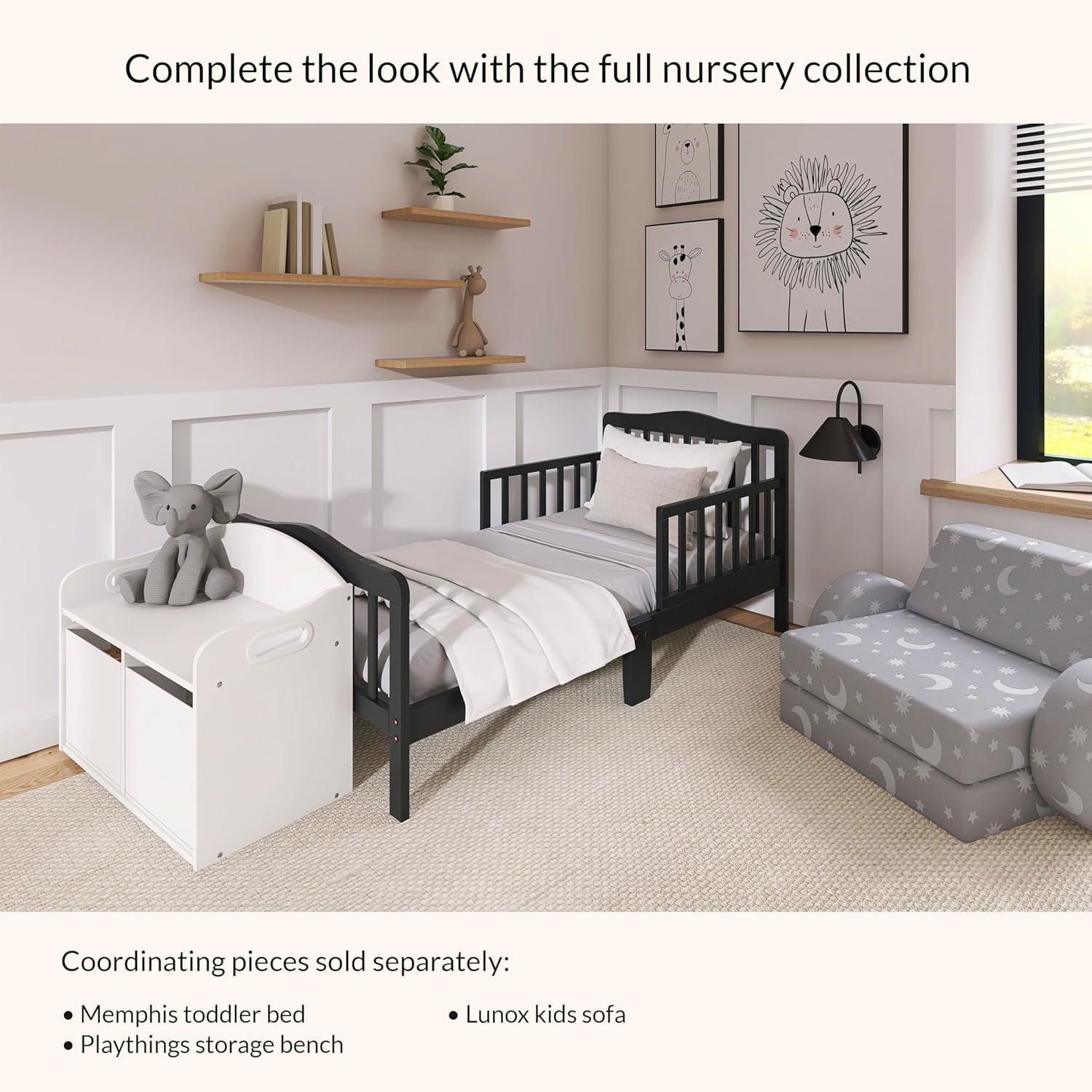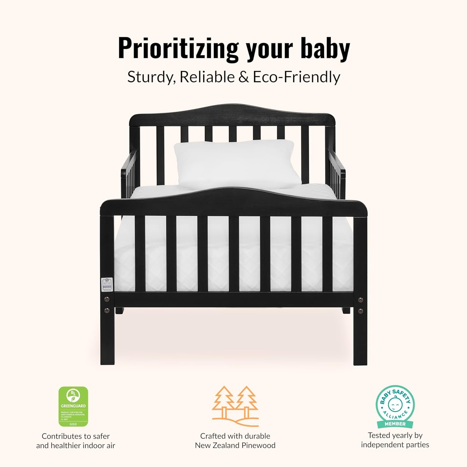 Dream On Me Classic Design Toddler Bed In Black, Greenguard Gold And JPMA Certified, Low To Floor Design, Two Side Safety rails, Non-Toxic Finishes, Wooden Nursery Furniture