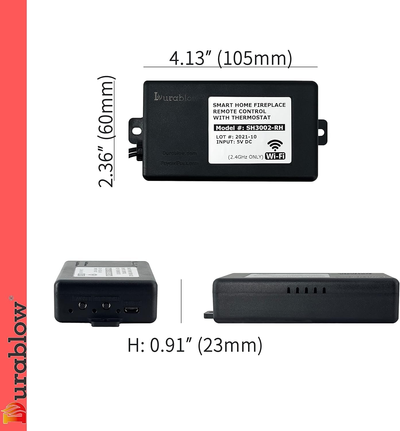 Durablow SH3002D-RH Dual WiFi (2.4G+5G) Smart Home Gas Fireplace Remote Control for Millivolt Valve/IPI, Compatible with Alexa, Google Home (Timer + Thermostat + Programmable + Remote Handset)