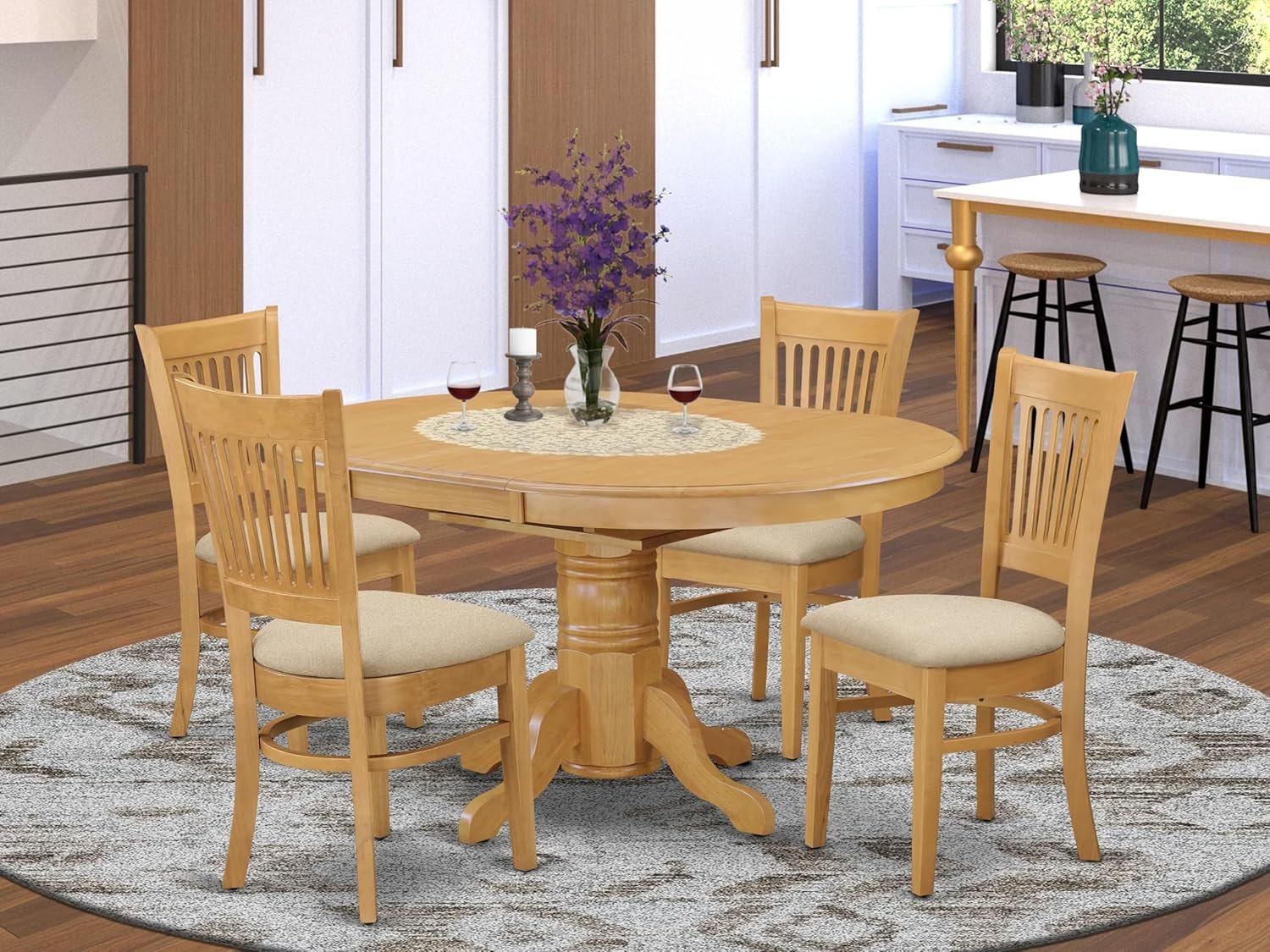 East West Furniture AVVA5-OAK-C 5 Piece Modern Dining Table Set Includes an Oval Wooden Table with Butterfly Leaf and 4 Linen Fabric Kitchen Dining Chairs, 42×60 Inch, Oak