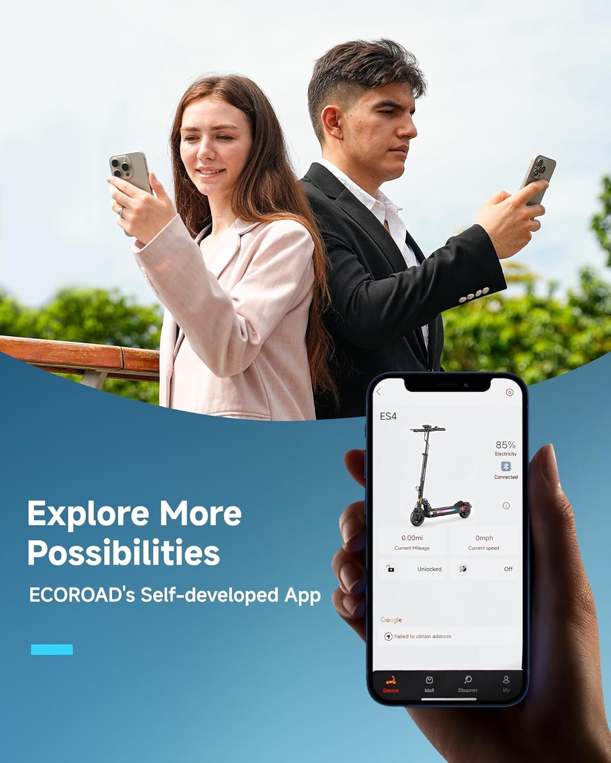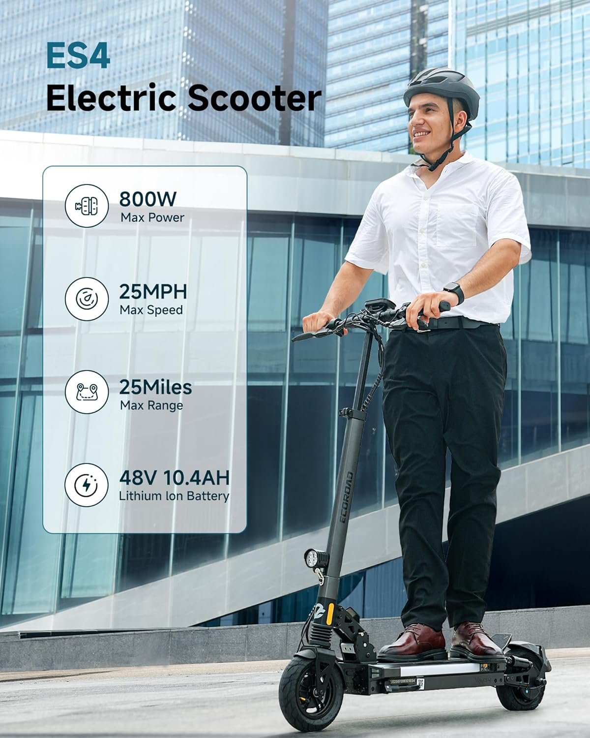 ECOROAD Electric Scooter Adults ES4/ES6, 800/1000W Motor & 25/31MPH Portable E-Scooter, 25/31 Miles Range, 8.5/10″ Off-Road Pneumatic Tires, Dual Suspension & Brakes System, RGB Lights & APP Control