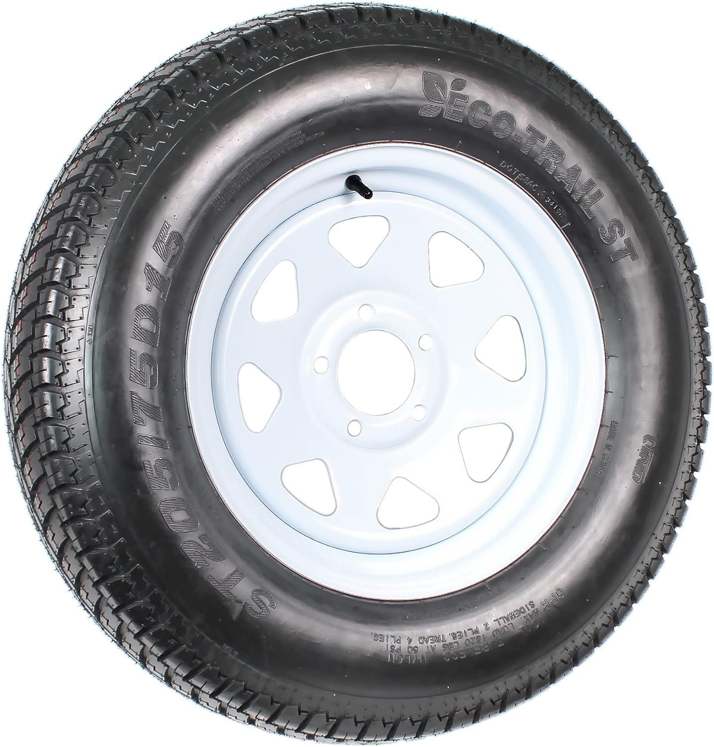 eCustomrim Trailer Tire On Rim ST205/75D15 F78-15 205/75-15 Load Range C 5 Lug Wheel White Spoke – 2 Year Warranty w/Free Roadside