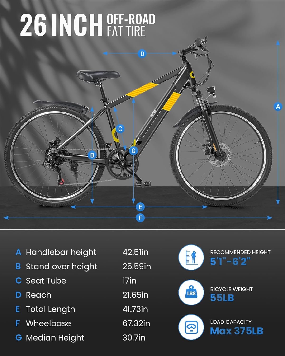 Electric Bike for Adults,26″ E-Bike with 700W Peak Motor 21-Speed,Up to 50 Miles Removable Battery,Front Fork Suspension Dual Disc Brakes,Ebikes for Adults Commute Mountain All Terrain