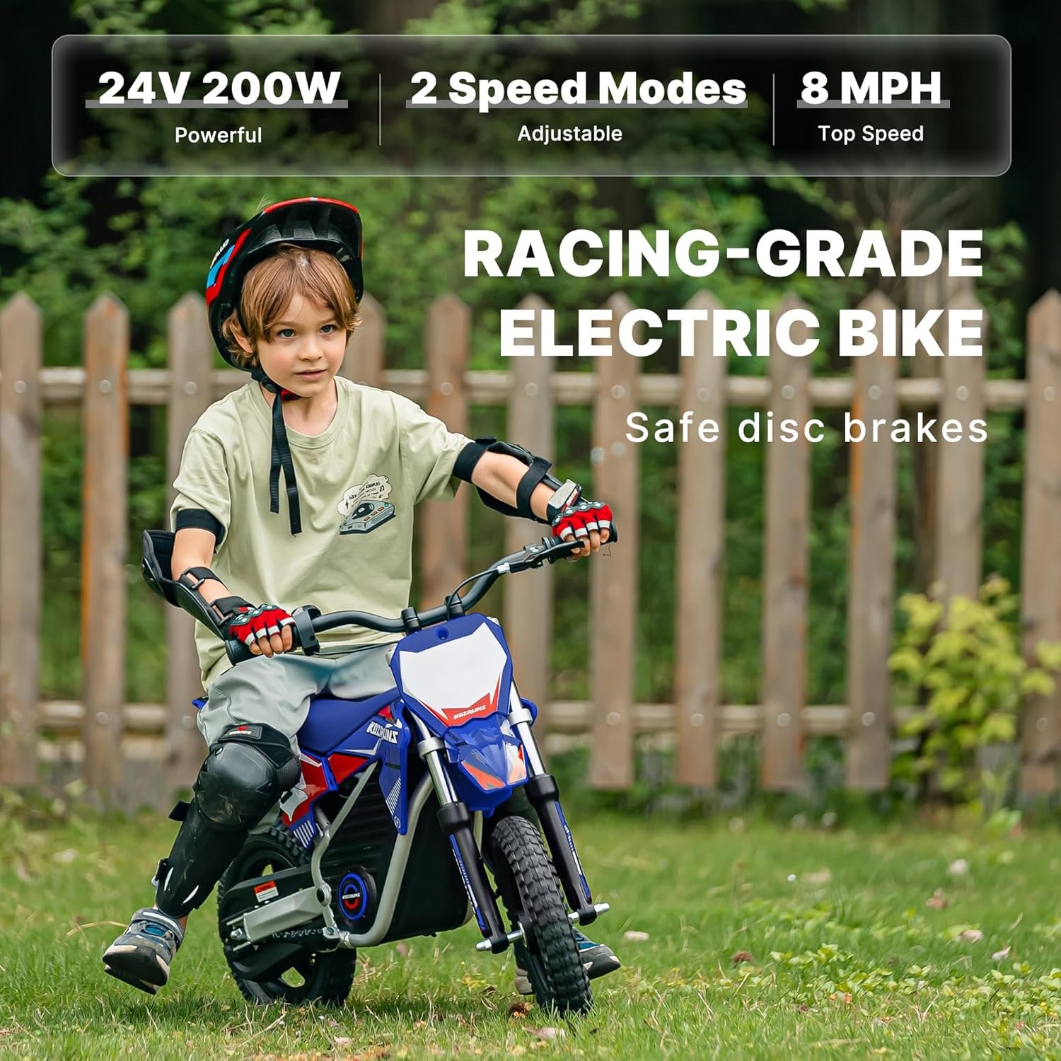 24V 350W Electric Dirt Bike for Kids – 3-Speed Modes, 14.29MPH Max Speed, ASTM-Certified Safe Motorcycle with Shockproof Suspension, Best Gift for Boys & Girls