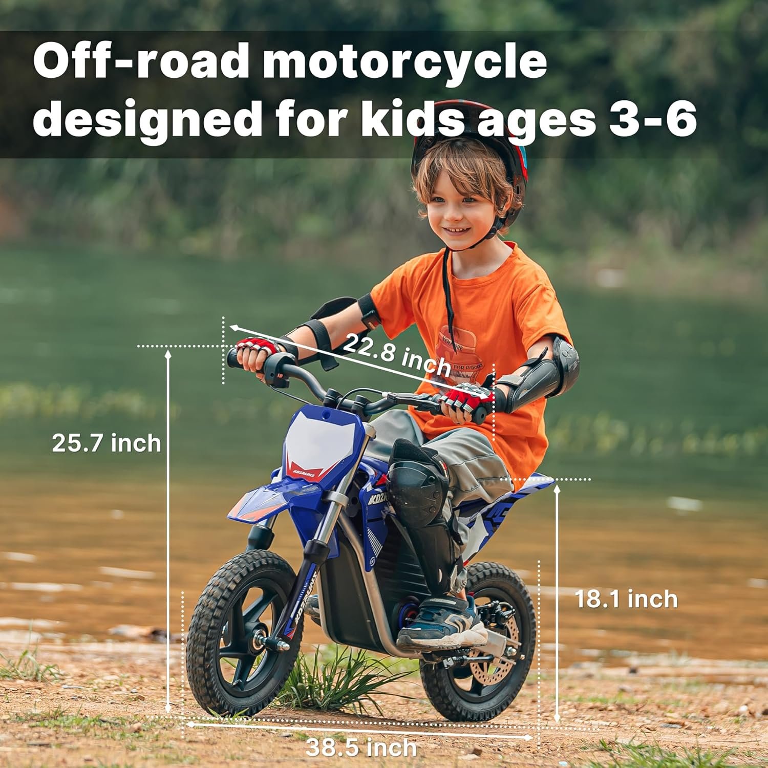 Electric Dirt Bike for Kids, Powerful Motorcycle for Ages 3-6, 24V 2.6Ah Lithium Battery, Dual Shock Absorption, 2 Speed Modes, Safe Disc Brake, 12Inch Off Road Tires, Blue