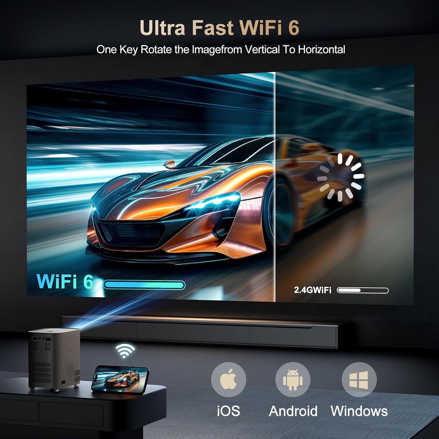 [Electric Focus] Projector with WiFi and Bluetooth, Native 1080P 15,000 Lumens 4K Supported, Agreago Outdoor Movie Projector for Home Theater UP to 300″, for iOS/Android/TV Stick/HDMI/USB