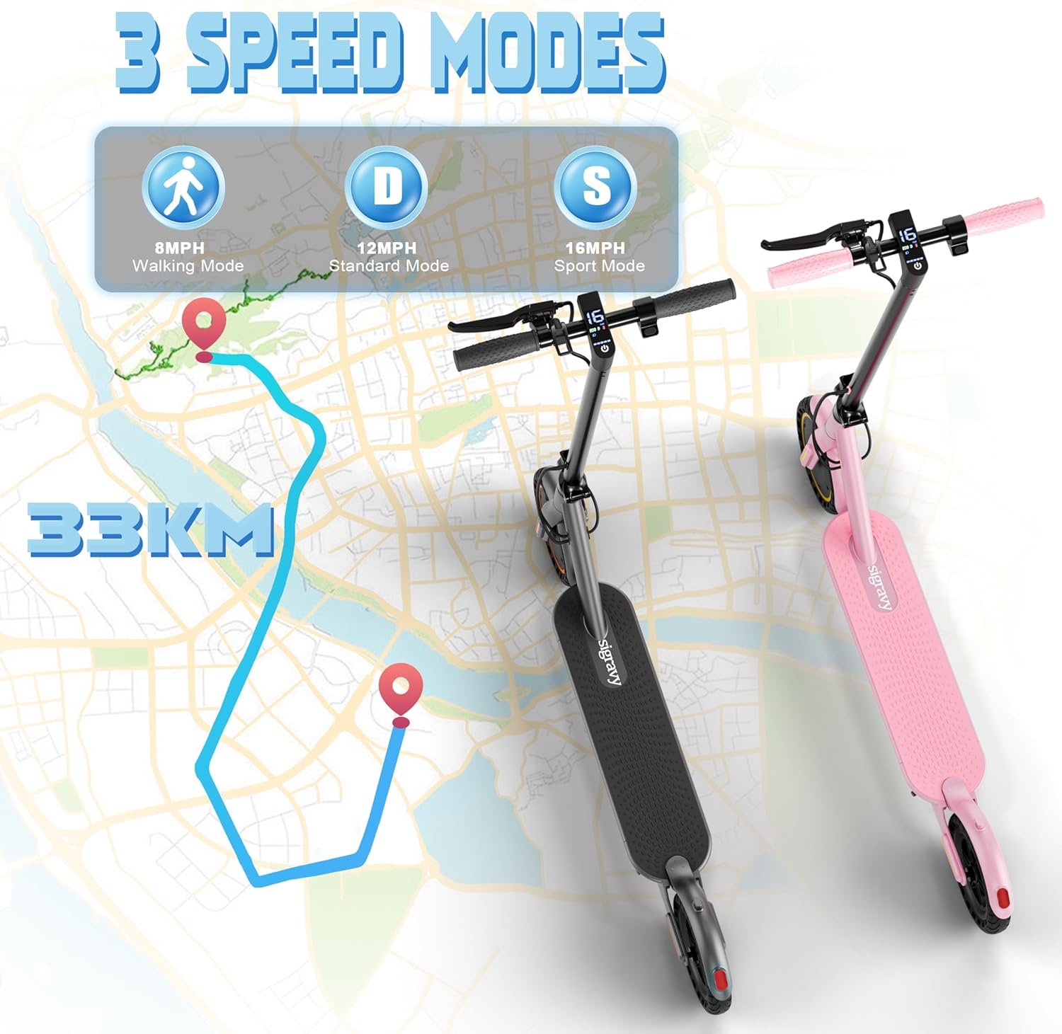 Hiboy Electric Scooter, 350W–810W Motor, 9″-16″ Tires, 19/25 MPH Top Speed, Long Range 17–34 Miles, Foldable Commuter Electric Scooter for Adults with Dual Braking System