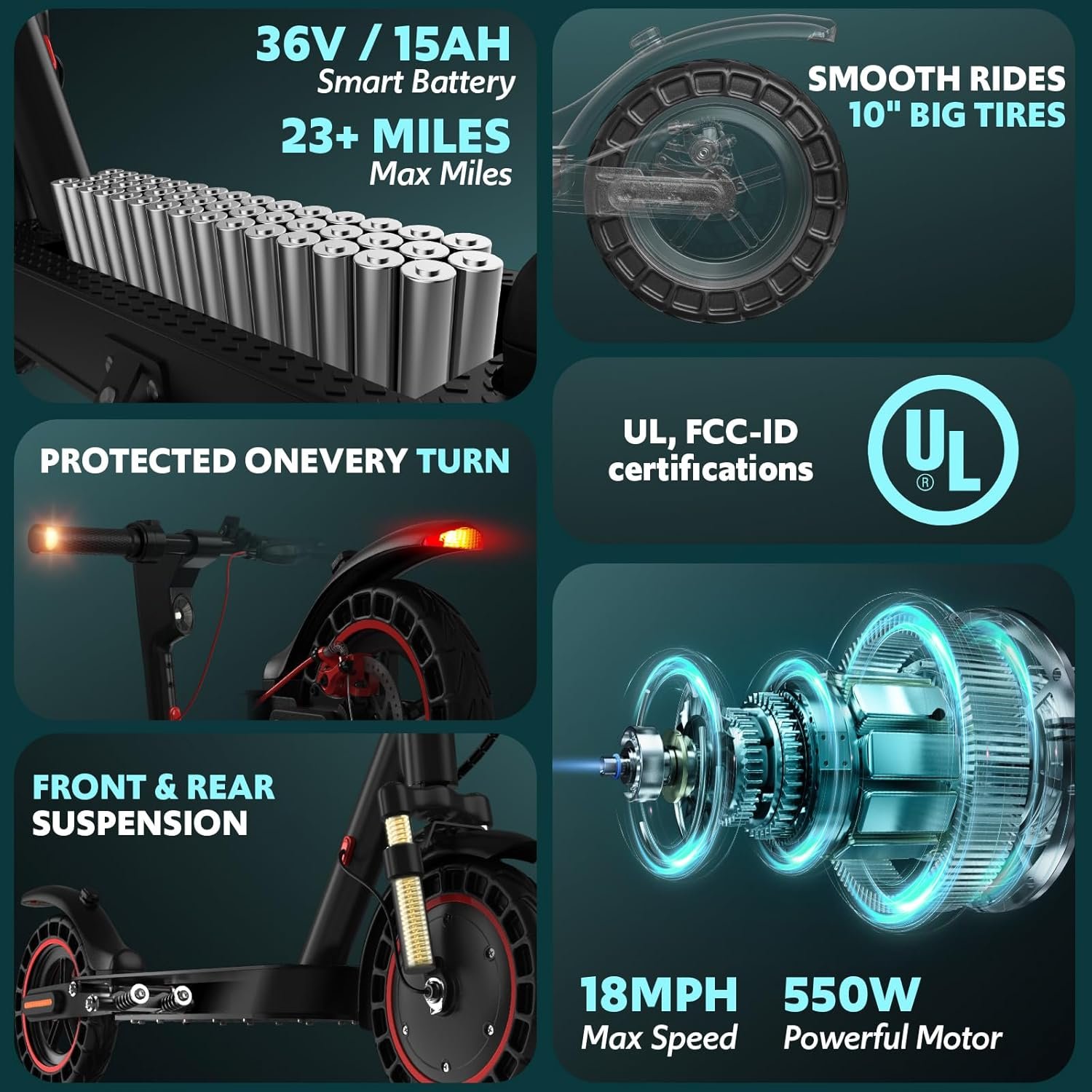 iScooter Electric Scooter for Adults & Teens, 500/650 Peak Power, Up to 15/18/25 Miles Range, 19/22/25 MPH Top Speed, Cruise Control, Dual Braking System, Foldable E-Scooter for Commuting & Campus Use