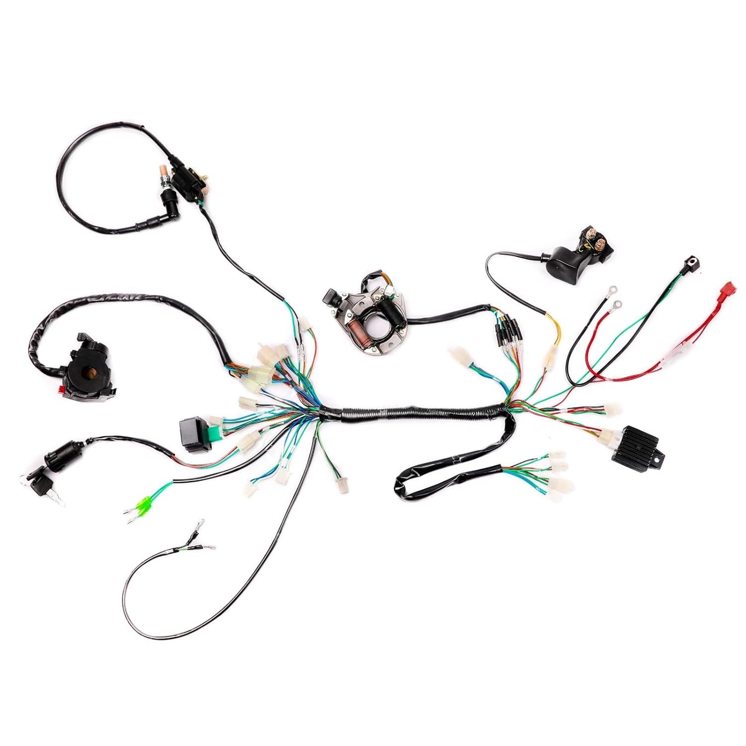 Electrics Wire Loom 2 Coil Stator CDI Wiring Harness + 2 Bolt Starter Motor for 50cc 70cc 90cc 110cc 125cc Taotao Roketa Coolster SSR Apollo ATV Buggy Go Kart 4 Wheelers Pit Dirt Bike Quad