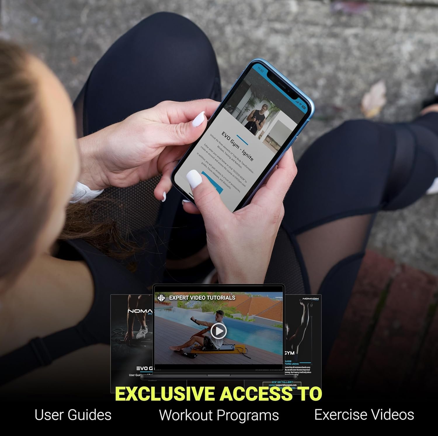 EVO Gym – Portable Home Gym Strength Training Equipment, at Home Gym | All in One Gym – Resistance Bands, Base Holds Gym Bar & Handles for Travel | Portable Gym & Home Exercise Equipment