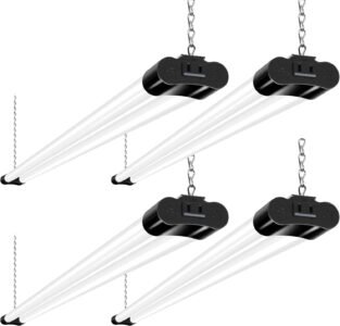 hykolity 4 Pack Linkable LED Shop Light, 4FT 42W [250W Equivalent], 4400lm, 5000K Daylight, with Plug, Utility Light Fixture, Hanging or Surface Mount, Black