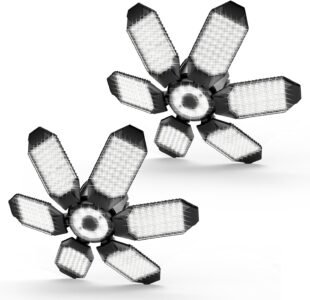 Garage Lights – 2Pack Super Bright 32000LM LED Garage Ceiling Light 6500K LED Shop Light w/ 6 Deformable Panels Screw in E26/E27 Socket Light Bulbs for Workshop Storage Warehouse Attic