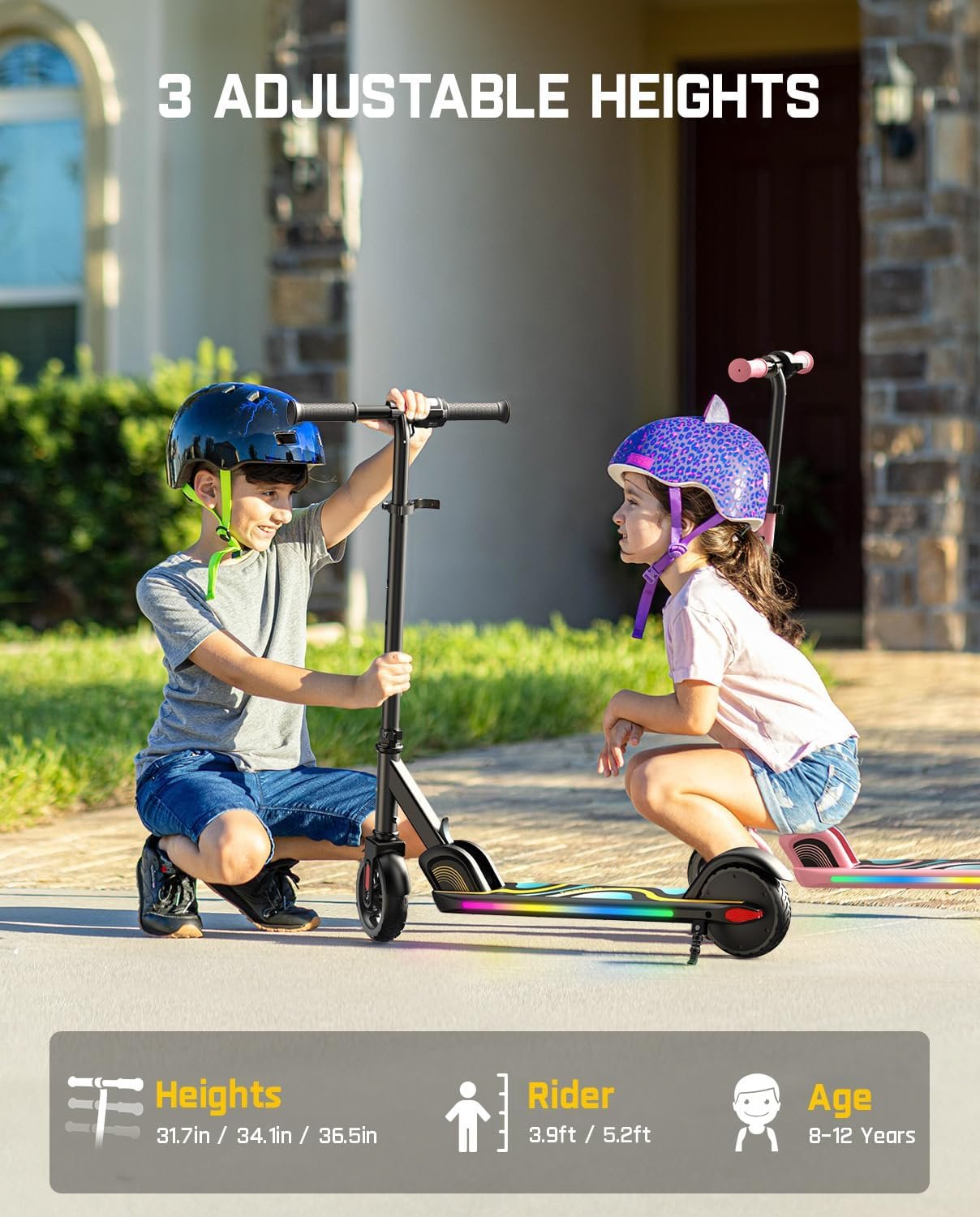 FanttikRide C9 Pro Electric Scooter for Kids 8-12, Adjustable Handlebar Height for Riders 3.9-5.2 ft, 132 lbs, Up to 40 min Continuous Time, 5 Miles Range, 3 Speed Mode 5/8/10 MPH