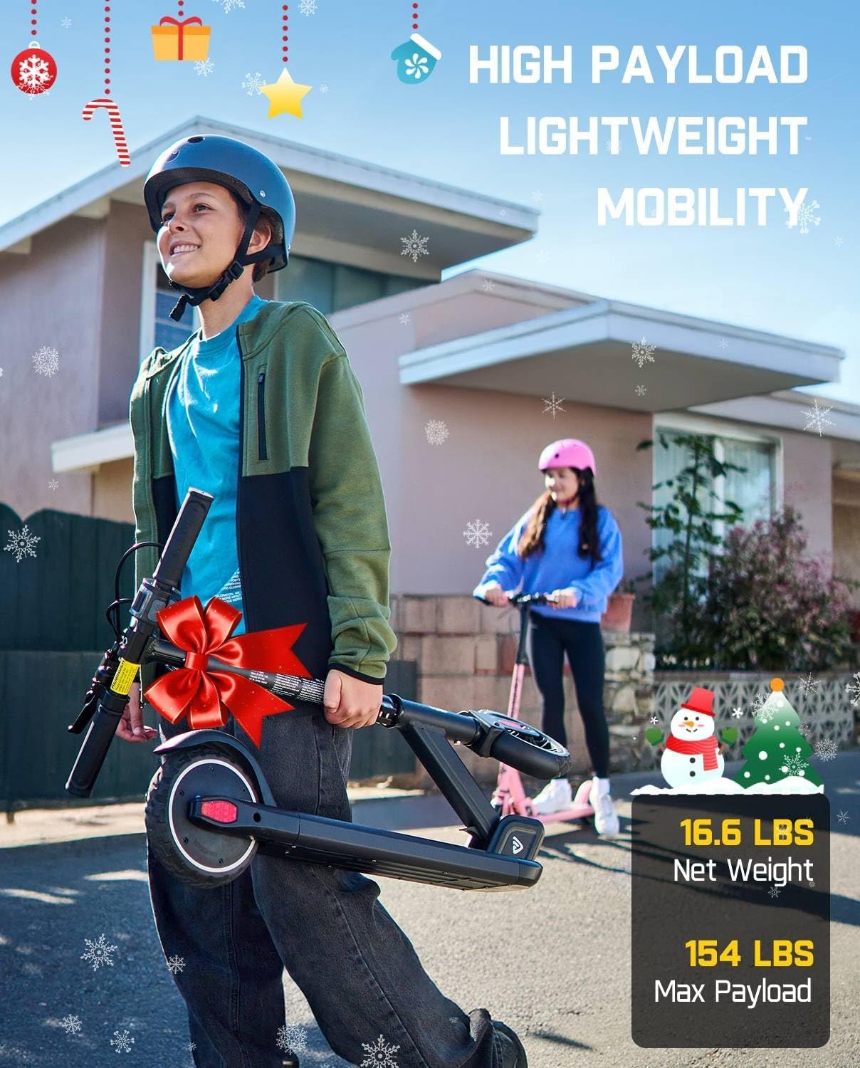 FanttikRide T9 Electric Scooter for Big Kids 6-14, 7/10/12 MPH, LED Battery Level, Height Adjustable and Foldable, Electric Scooter for Teenagers, Up to 40 mins