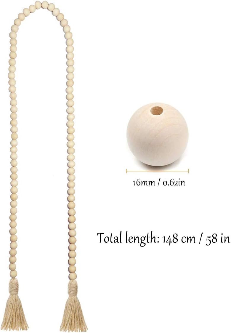 Farmhouse Beads 58in Wood Bead Garland with Tassels Rustic Country Decor Prayer Boho Beads Big Wall Hanging Decor