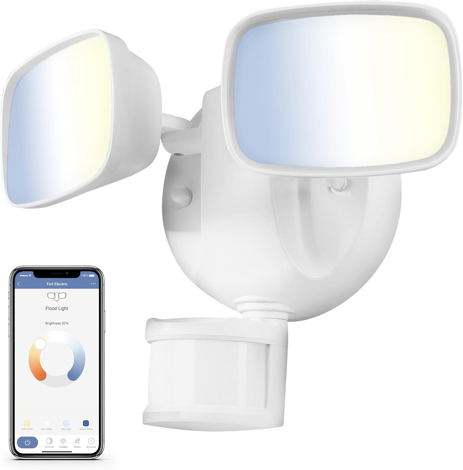 Feit Electric Smart Outdoor Flood Lights with Motion Sensor, 28W LED WiFi Security Light with Dusk to Dawn Compatible with Alexa and Hey Google, Tunable White, 2 Head, Hardwired, S9DFL/CCT/MOT/WH/AG