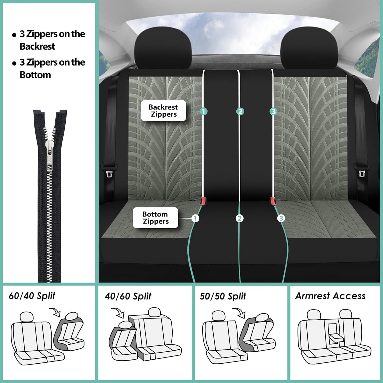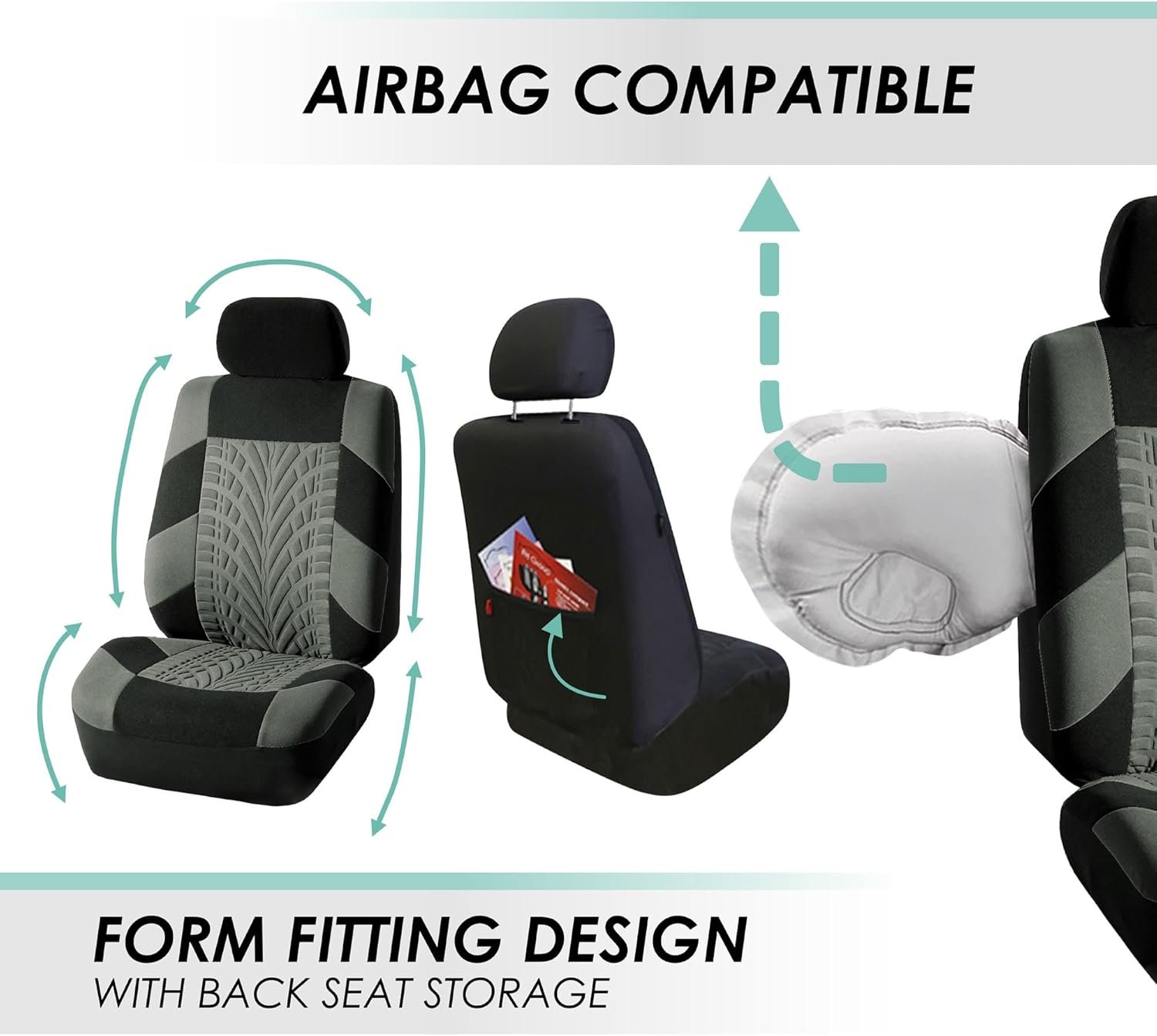 FH Group Car Seat Covers Full Set Gray Premium Cloth – Universal Fit, Automotive Low Back Front Seat Covers, Airbag Compatible, Split Bench Rear Seat, Washable, for SUV, Sedan