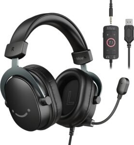 FIFINE PC Gaming Headset, USB Headset with 7.1 Surround Sound, Detachable Microphone, Control Box, 3.5mm Headphones Jack, Over-Ear Wired Headphones for PS5/Xbox/Switch, Black-AmpliGame H9