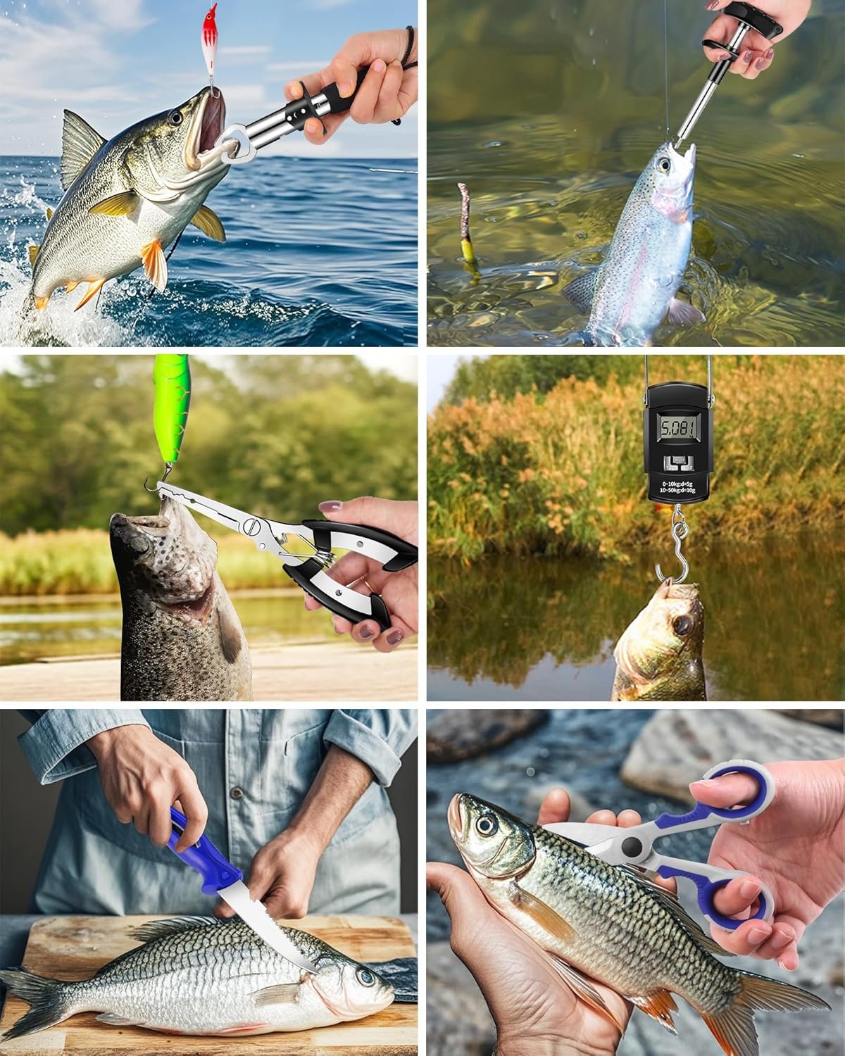 Fishing Tool Kit – Fishing Pliers, Hook Remover, Fish Gripper,Fish Scale, Fish Knife, Saltwater Fishing Gear with Sharpeners, Best Gifts for Men