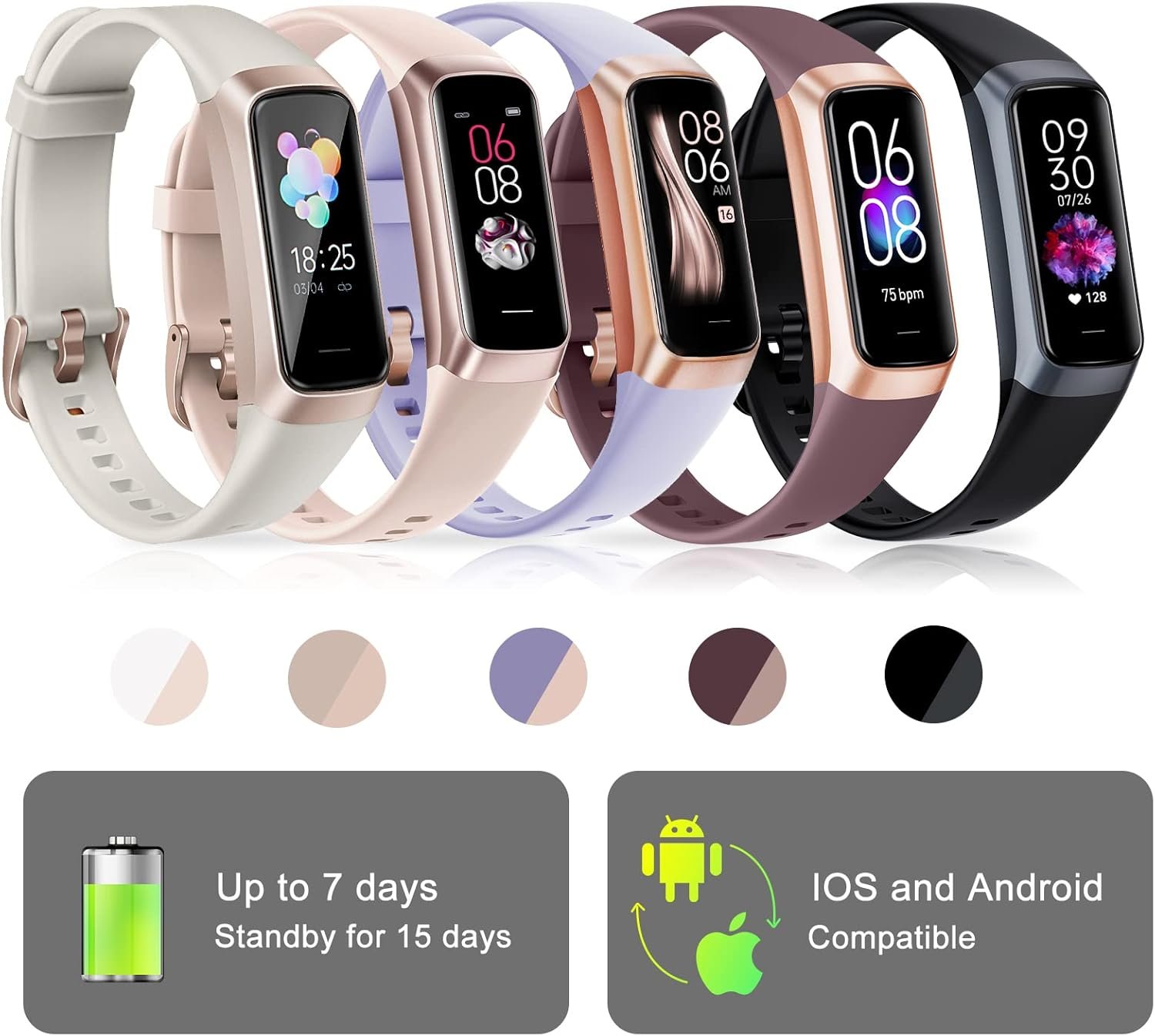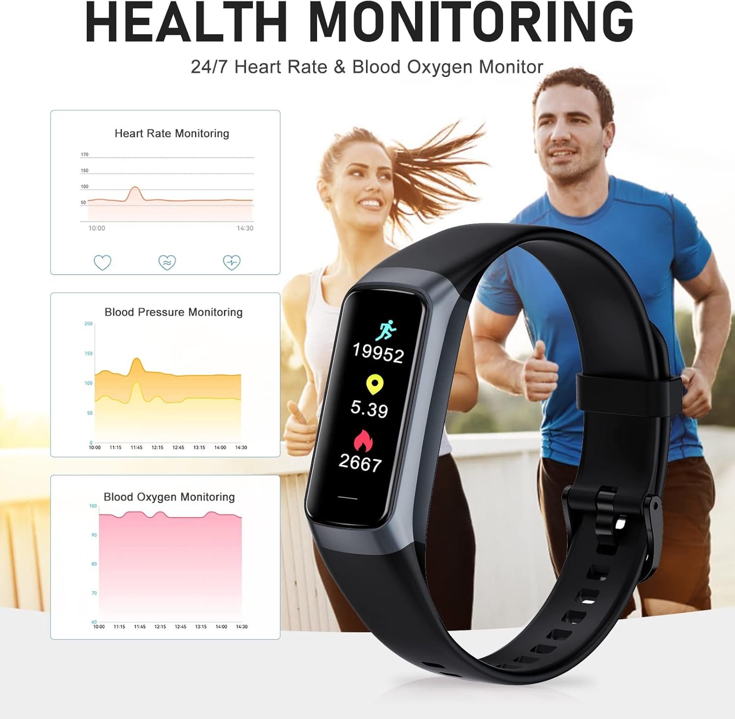 Smart Bracelet with Blood Oxygen/Blood Pressure Monitor, 60-Day Battery Health Fitness Tracker with 2 Bands,Lifetime Membership,Activity Tracking Heart Rate Sleep Monitor for Android iOS
