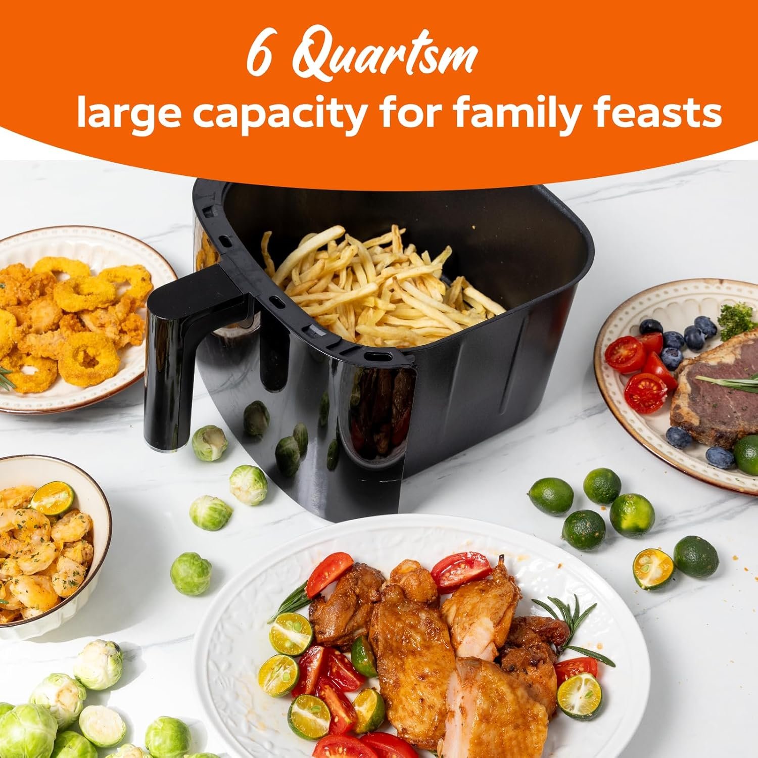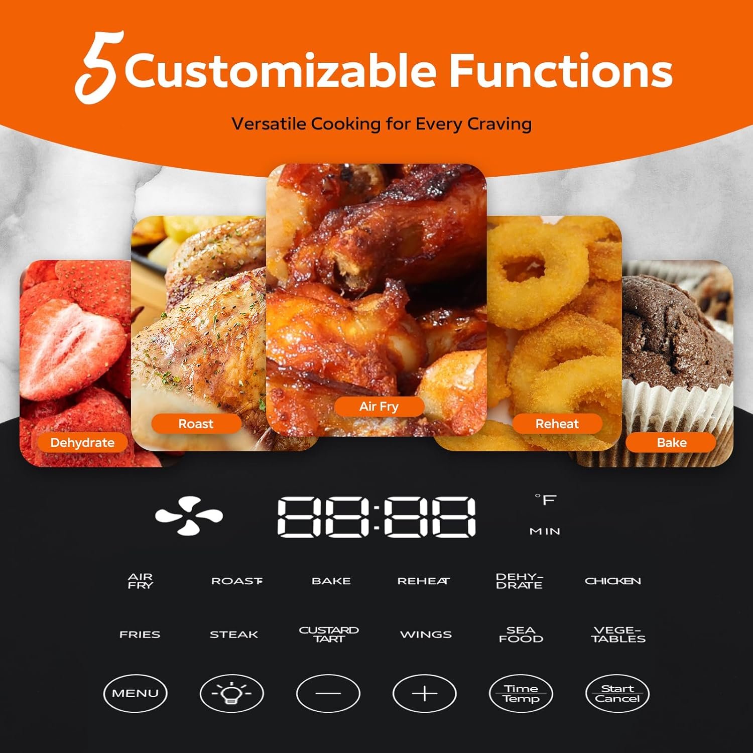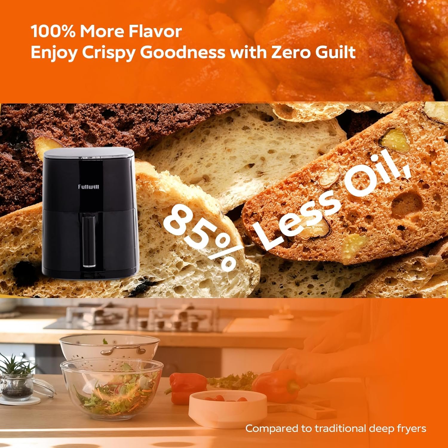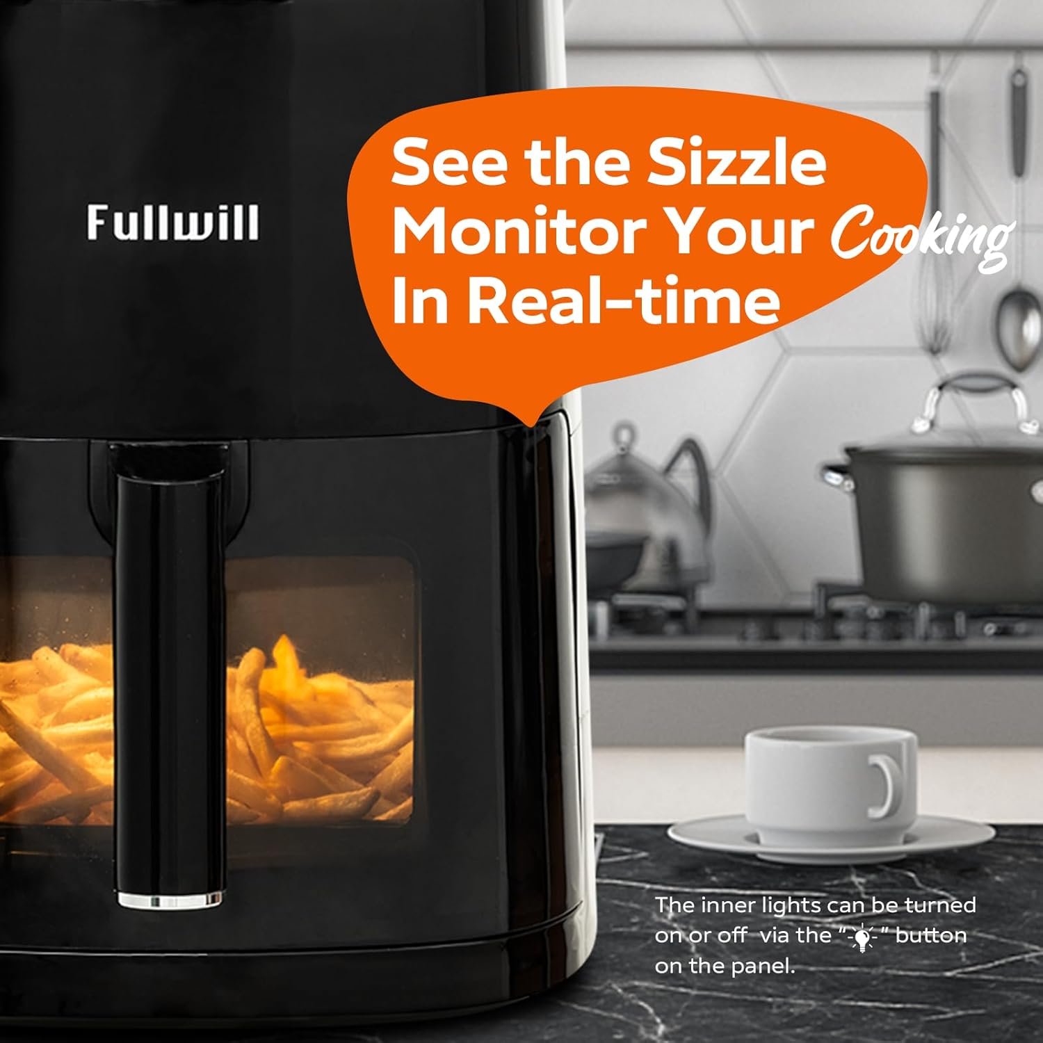 Fullwill Air Fryer 6QT with Clear window, 5-in-1 Multi-Function (Air Fry, Roast, Bake, Reheat, Dehydrate) with 7 One-Touch Presets, 85% Less Oil