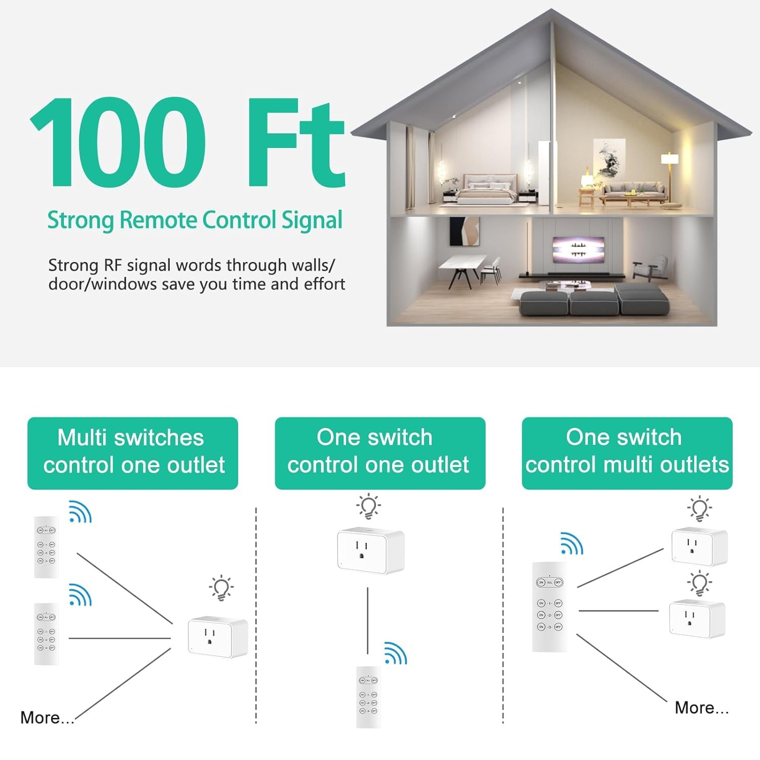 G-Homa Wireless Electrical Outlets with Remote Control, 1875W/15A, 100FT Range, ETL Listed – 3 Sockets + 1 Remote