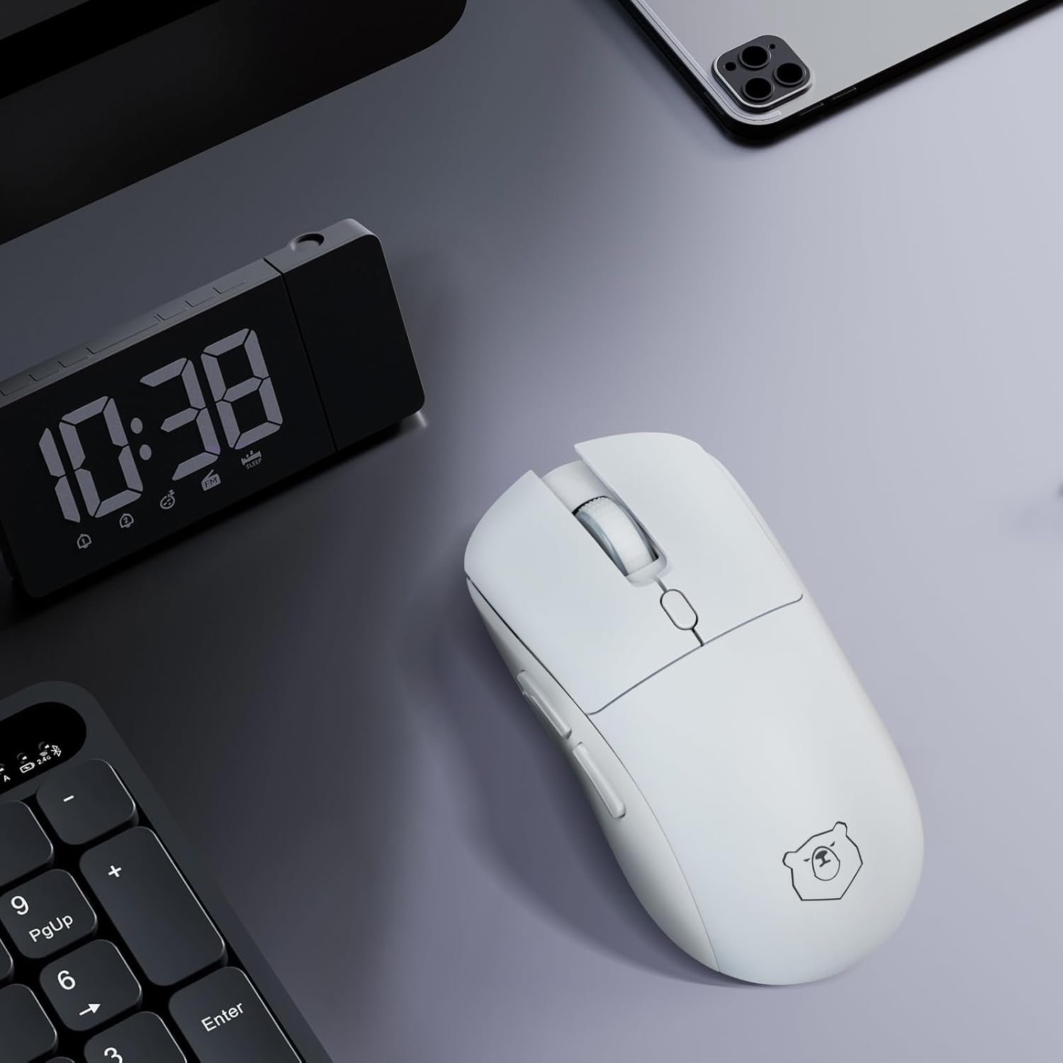 Gaming Mouse, Rechargeable Computer Mouse with with 2 Side Buttons, Type-C Adapter for Laptop, PC, Notebook – White