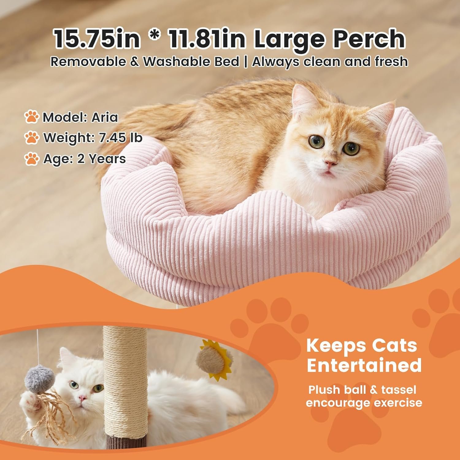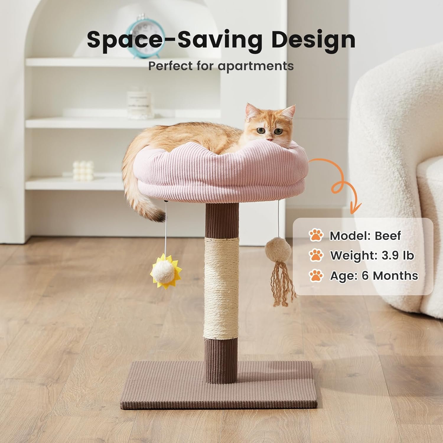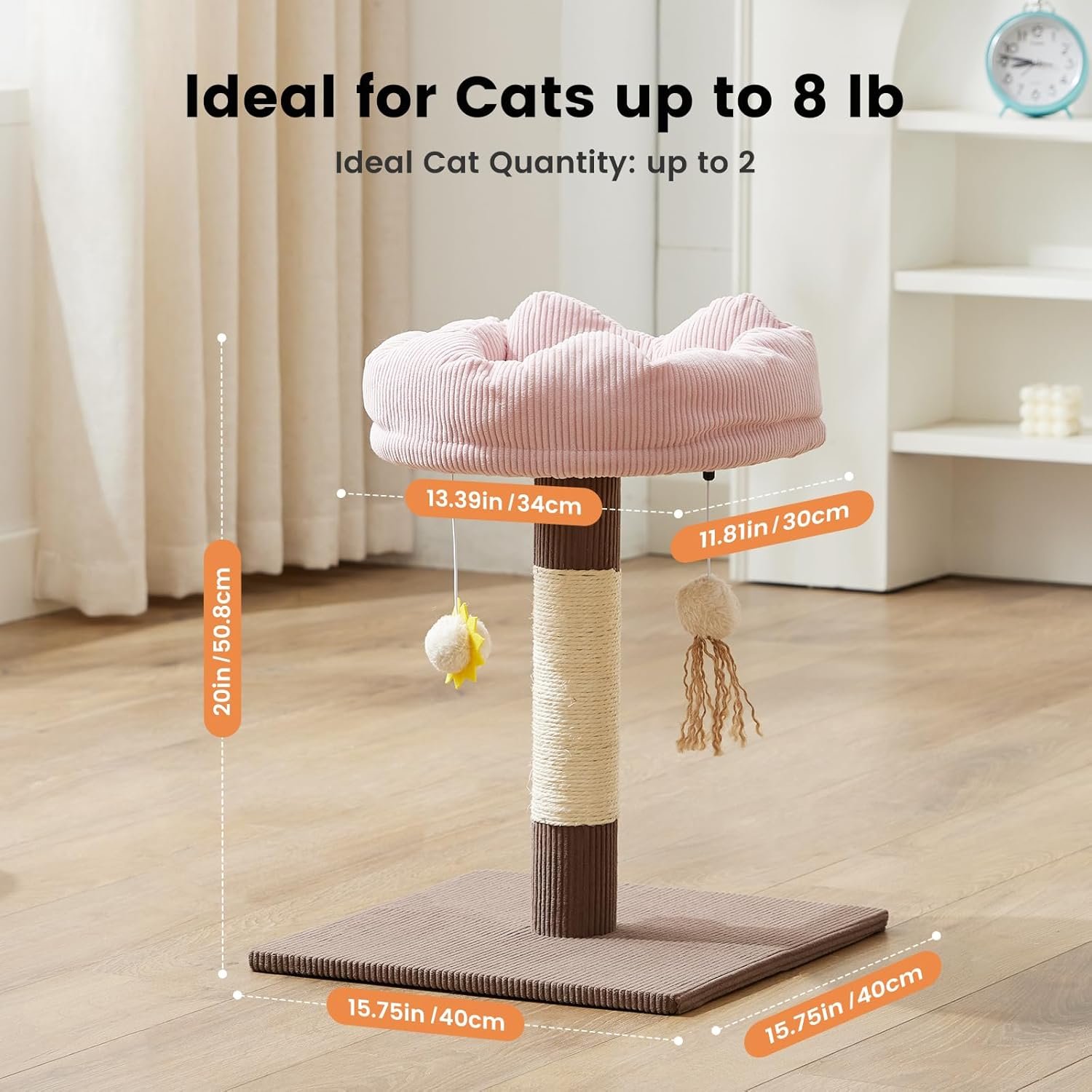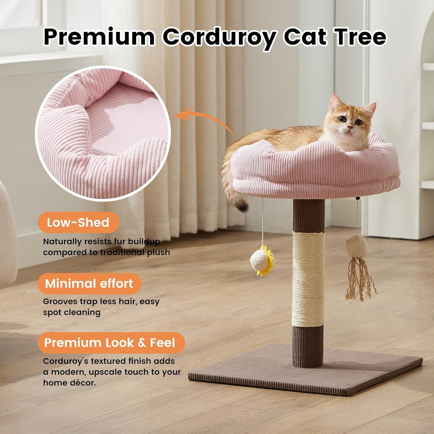 Gardner Pet 20″ Cat Tree Corduroy, Solid Wood Small Cat Tree, Compact Cat Tower Perch for Kittens & Indoor Cats(Brown, Circle-Corduroy)