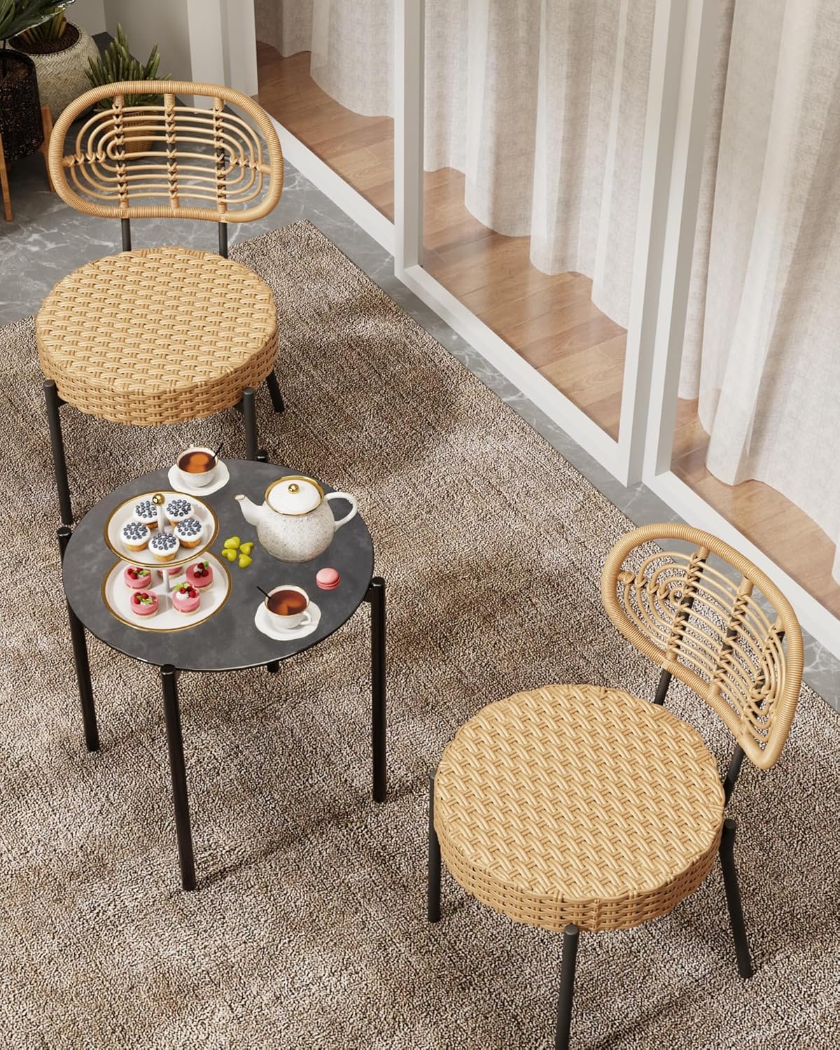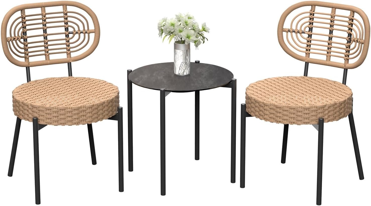 GarveeLife 3 Piece Wicker Patio Bistro Furniture Set, Outdoor Dining Chairs, Includes 2 Rattan Chairs and Tempered Glass Table, for Garden, Backyard, Balcony, Apartment (Black & Brown)