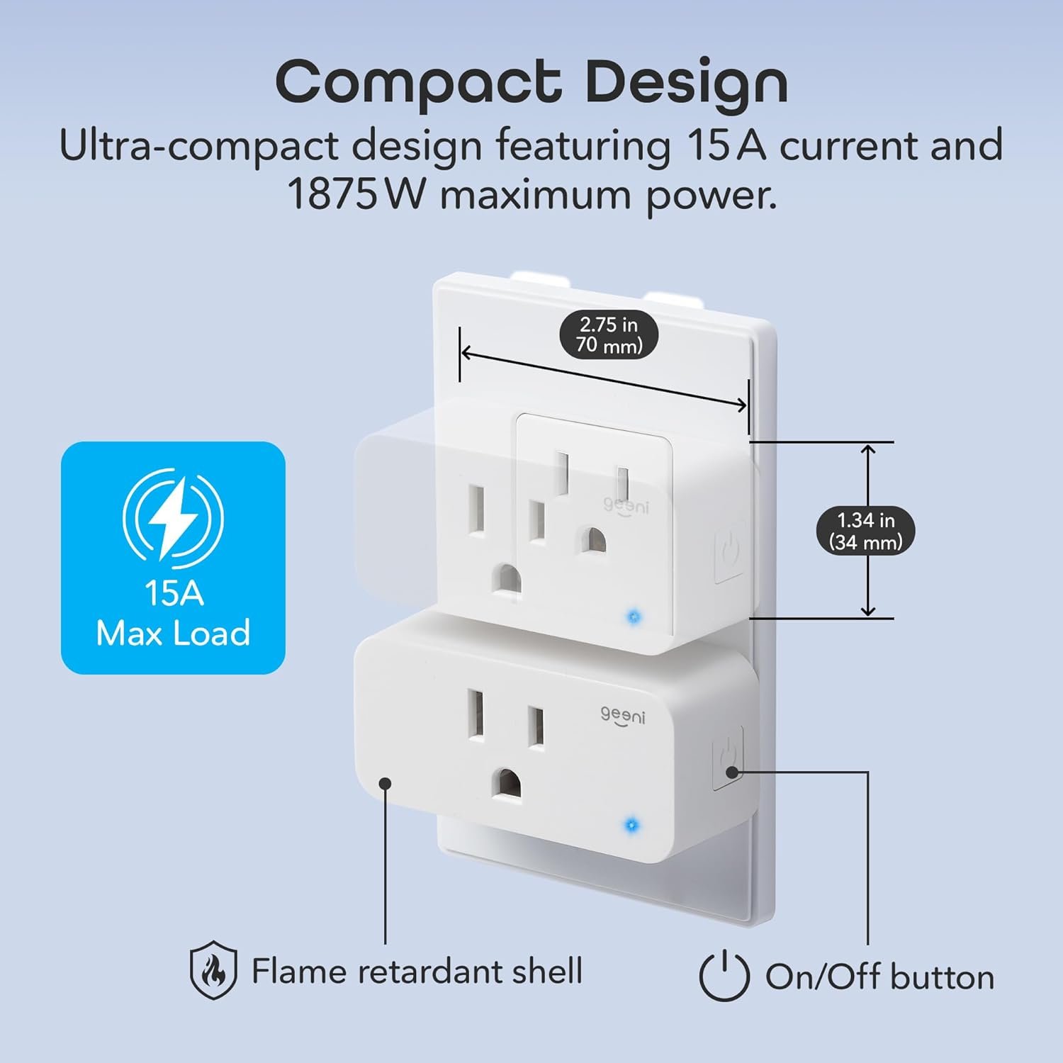 Geeni Smart Plug Mini 15A WiFi Outlet 2-Pack, Compatible with Alexa Google Home, No Hub Required, App Remote Control, UL Certified White
