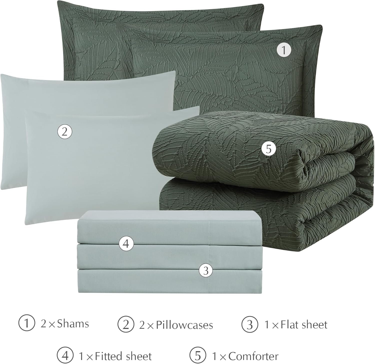 Geniospin Queen Comforter Set – 7 Pieces Dark Green Bedding Set, Botanical Textured Comforter Bed Set, All Season Lightweight Bed in a Bag with Comforter, Sheets, Pillowcases & Shams