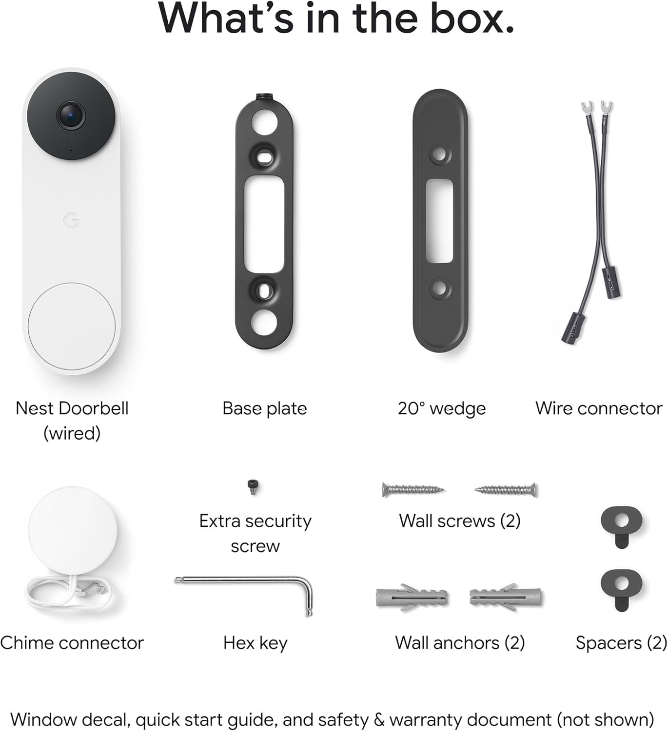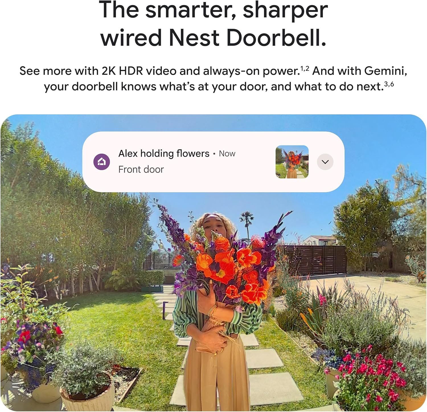 Google Nest Doorbell (Wired, 3rd Gen) – 2K Video and Gemini, Live View, Night Vision, 2-Way Audio – Works with Google Home – 2025 Model – Snow