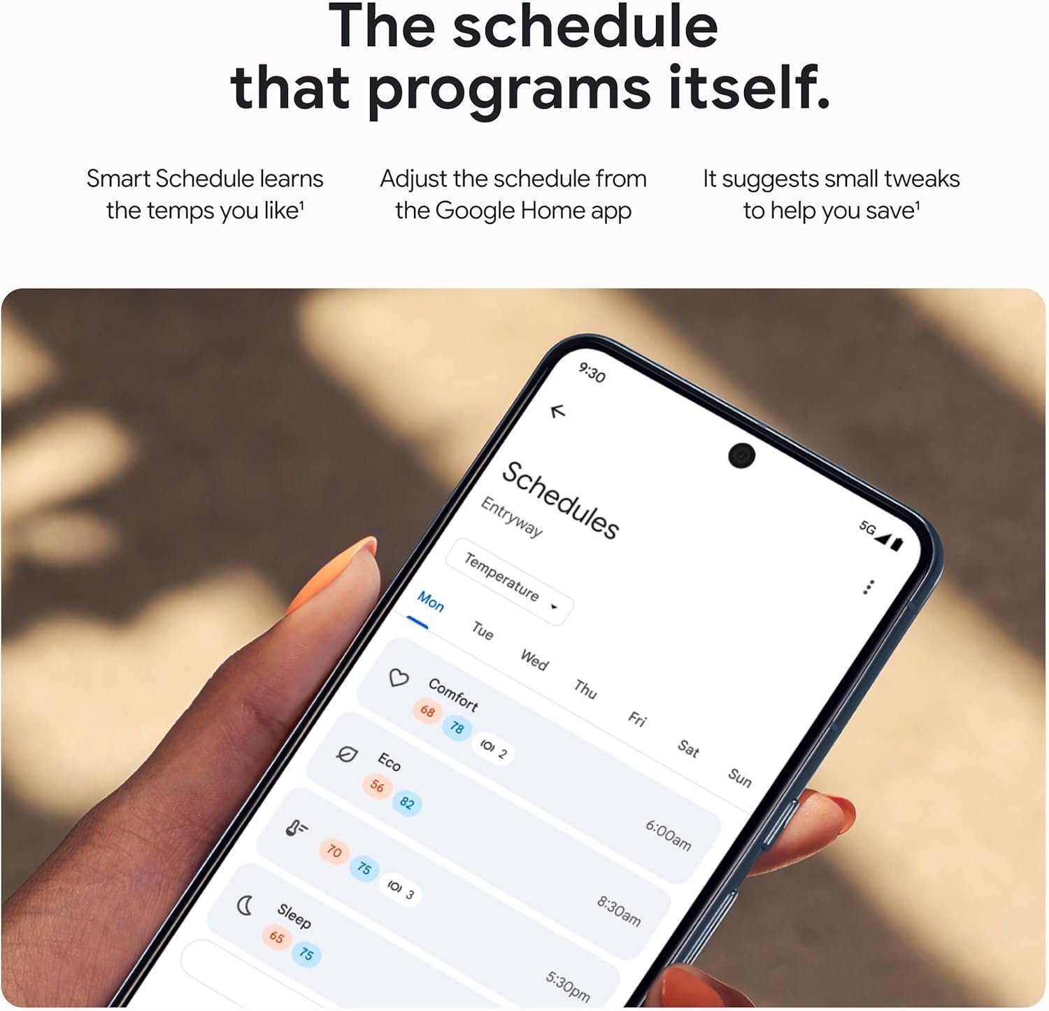 Google Nest Learning Thermostat (4th Gen, 2024) with Nest Temperature Sensor – Energy Saving Smart Thermostat – Compatible with Alexa, Apple HomeKit and Google Home App – Polished Gold
