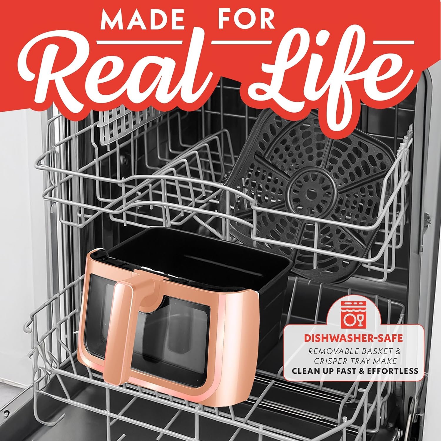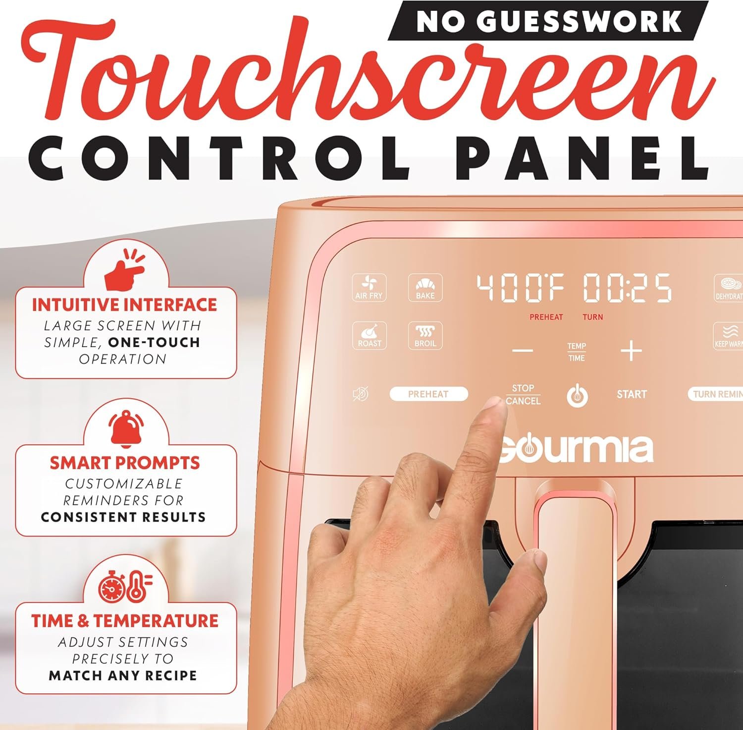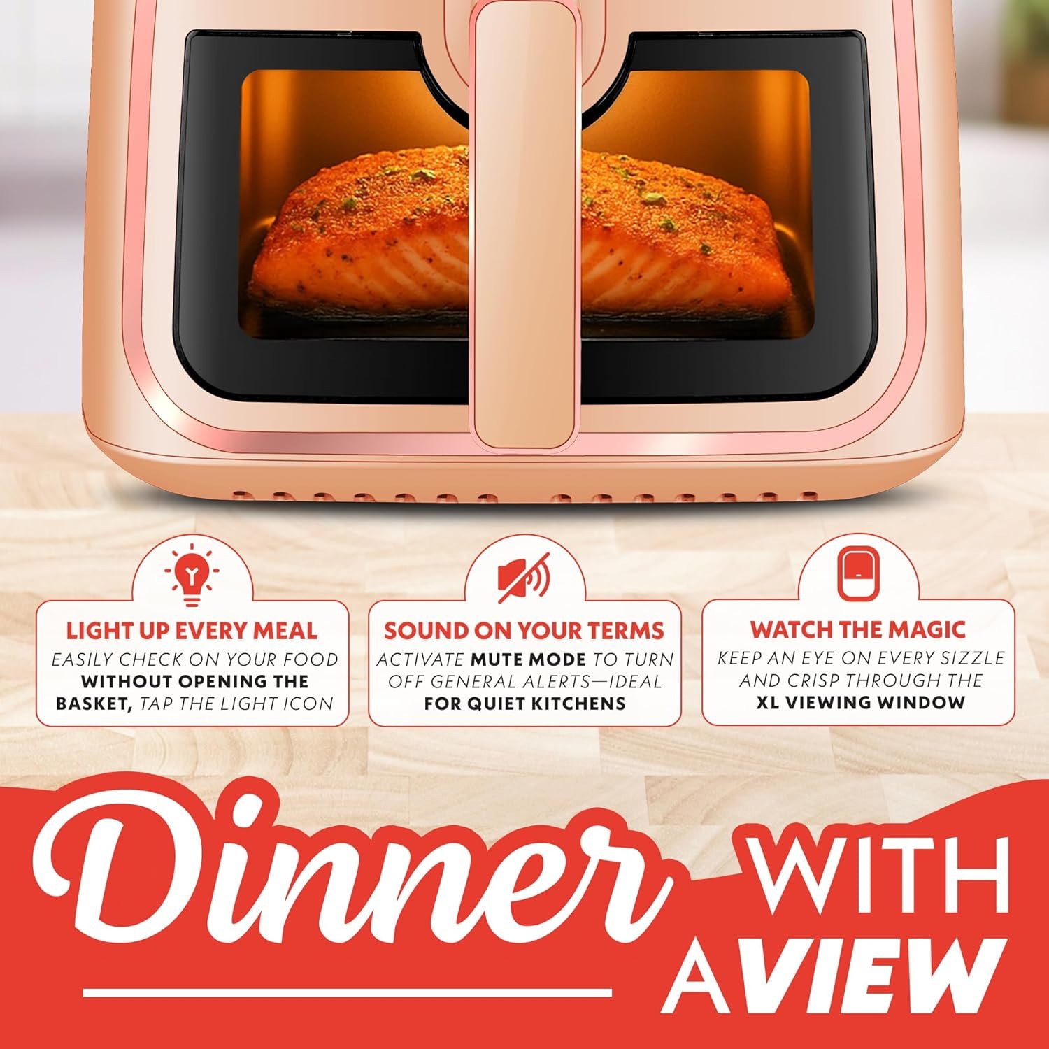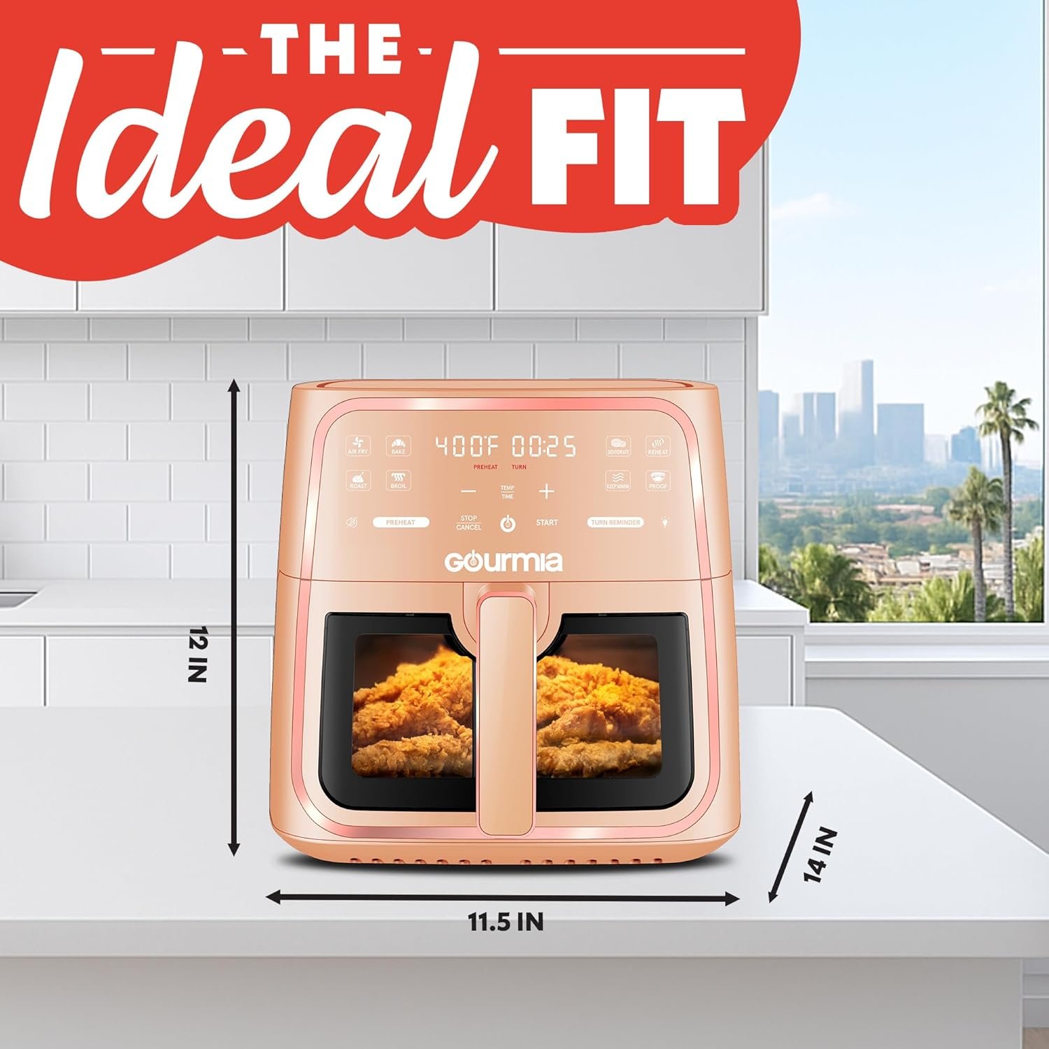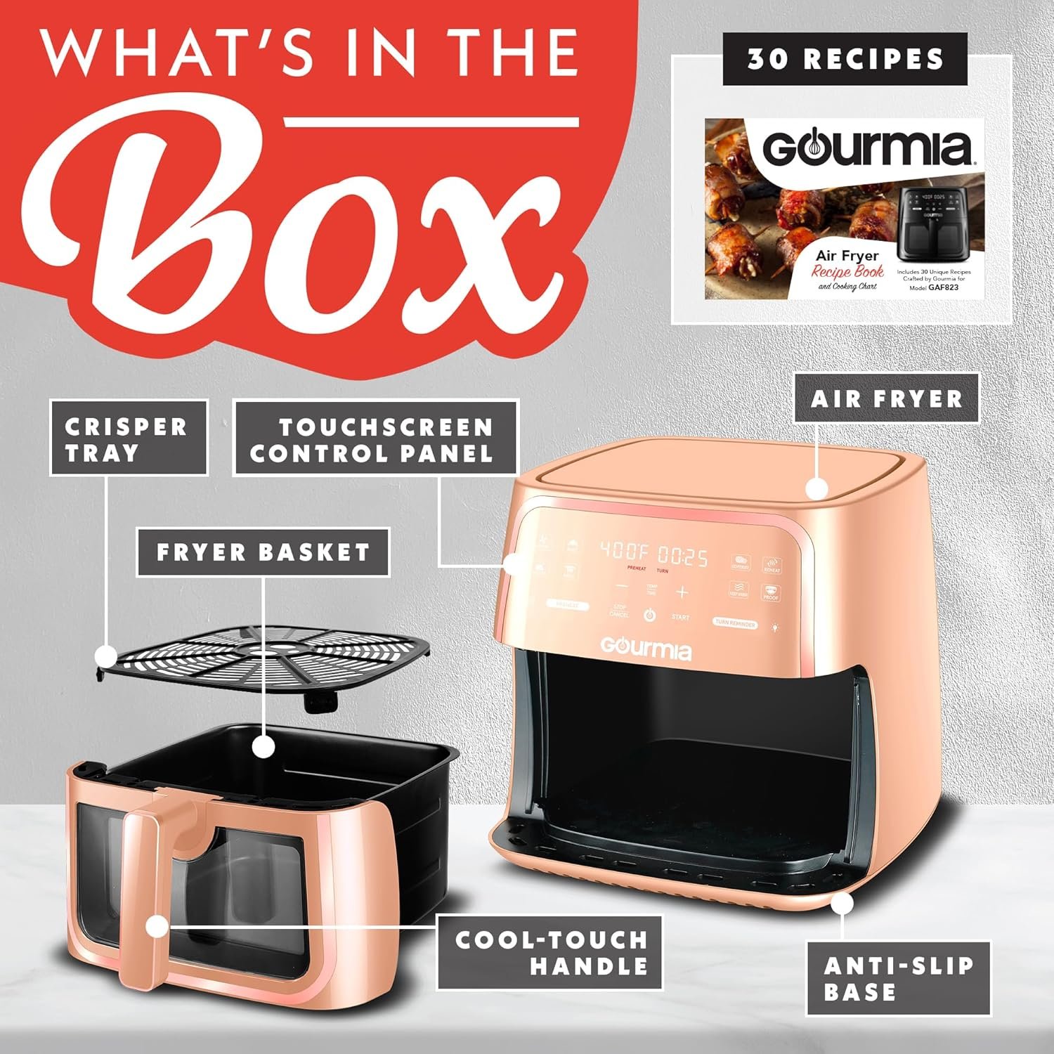 Gourmia 8 Qt Air Fryer, 8 Presets with Digital Display, FryForce 360° Technology, Easy View Window & Interior Light, Dishwasher Safe Basket, Peach
