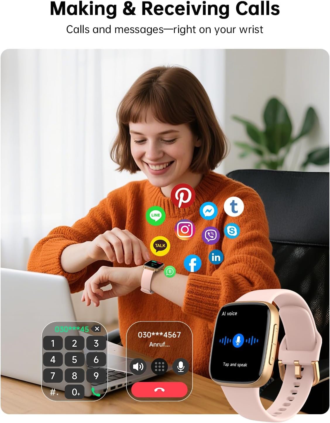 AI Smart Watch with ChatGPT, 1.91″ Bluetooth Calling Smartwatch for Men Women, 110+ Fitness Modes Activity Tracker, Heart Rate/Sleep/Calorie Monitor, IP68 Waterproof Step Counter for Android iOS