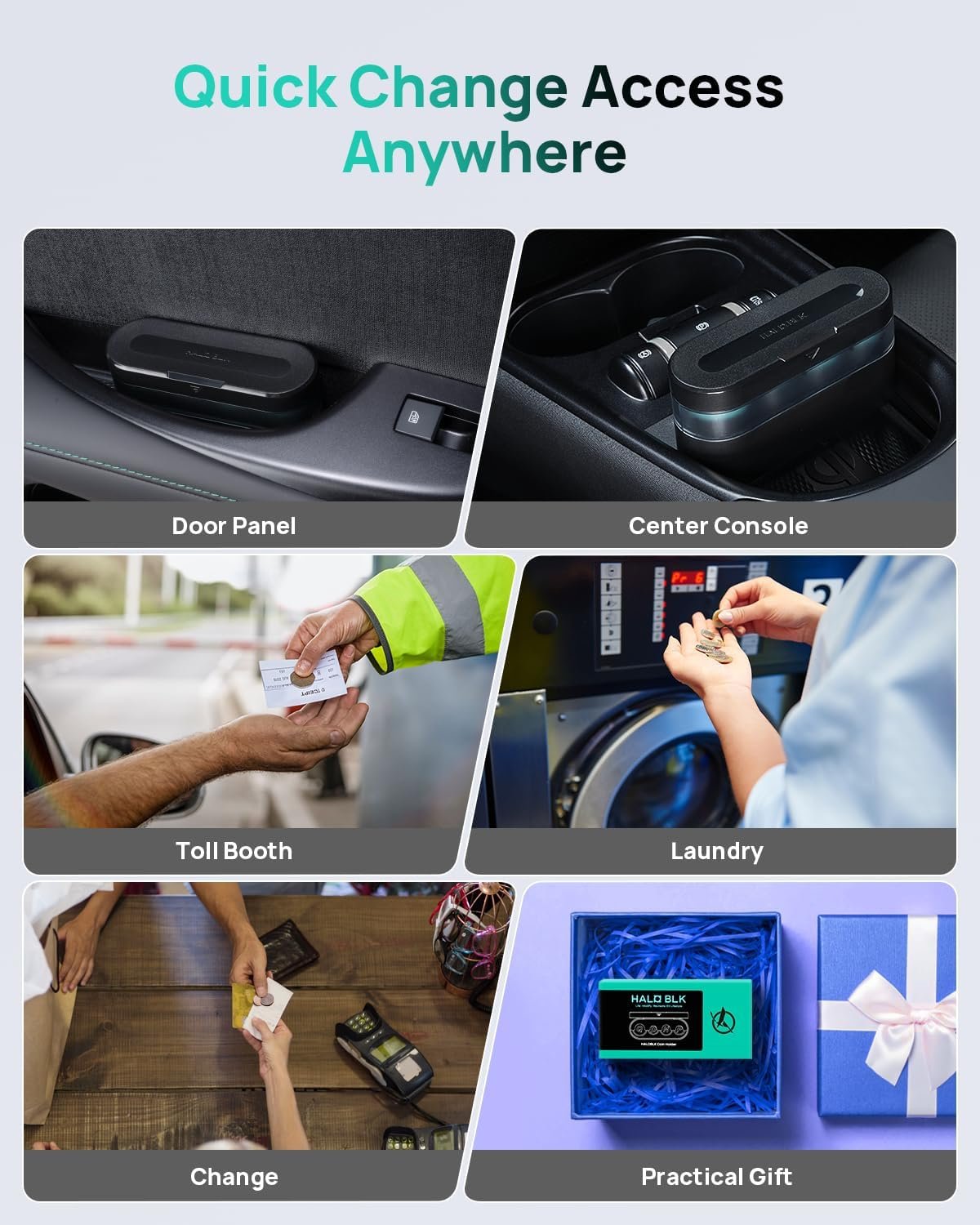 HALOBLK Larger-Capacity Coin Holder for Car Change Holder Organizer, Compatible with Most Car & Trucks, Black