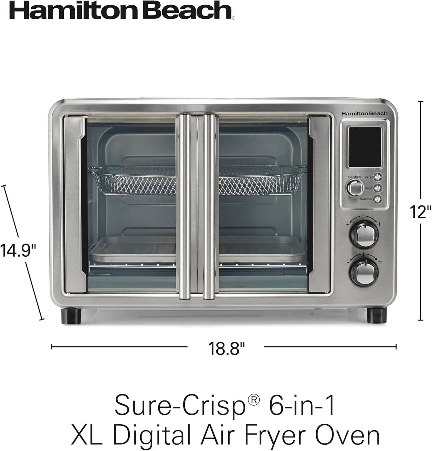 Hamilton Beach Sure Crisp 6-in-1 XL Digital Air Fryer Toaster Oven Combo, With Easy-Access French Doors, Bake, Broil, Toast, Pizza & Reheat Functions, 0.9 cu. ft. Capacity, Stainless Steel (31191)