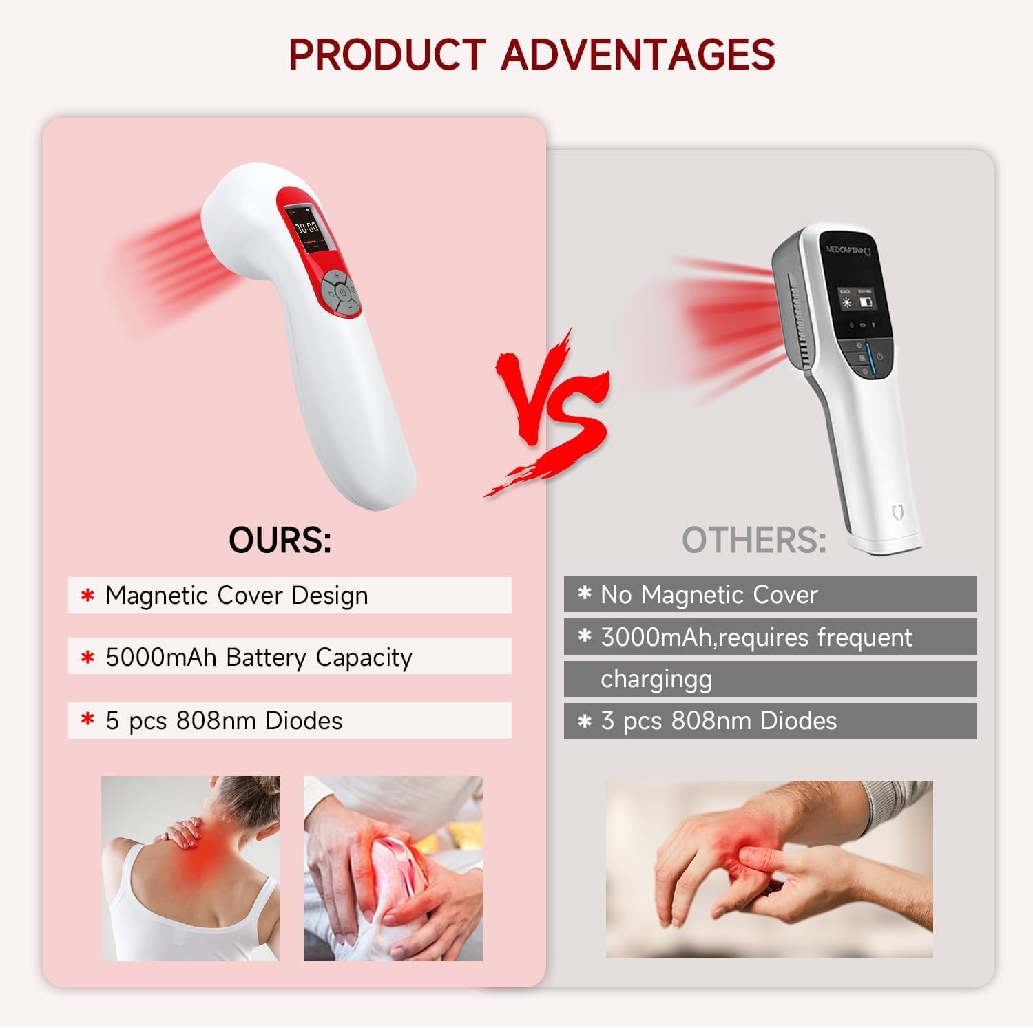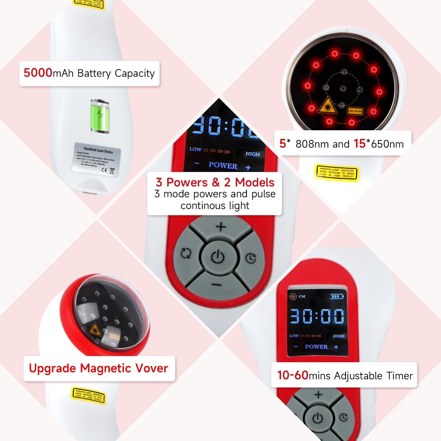 Handheld Red Light Therapy Device for Dogs and Man, LLLT Laser Light Therapy for Pets Pain Relief, Joint Muscle Knee Wrist Ankle, 5000mAh Large Capacity Rechargeable with 5 * 808nm & 10 * 650nm