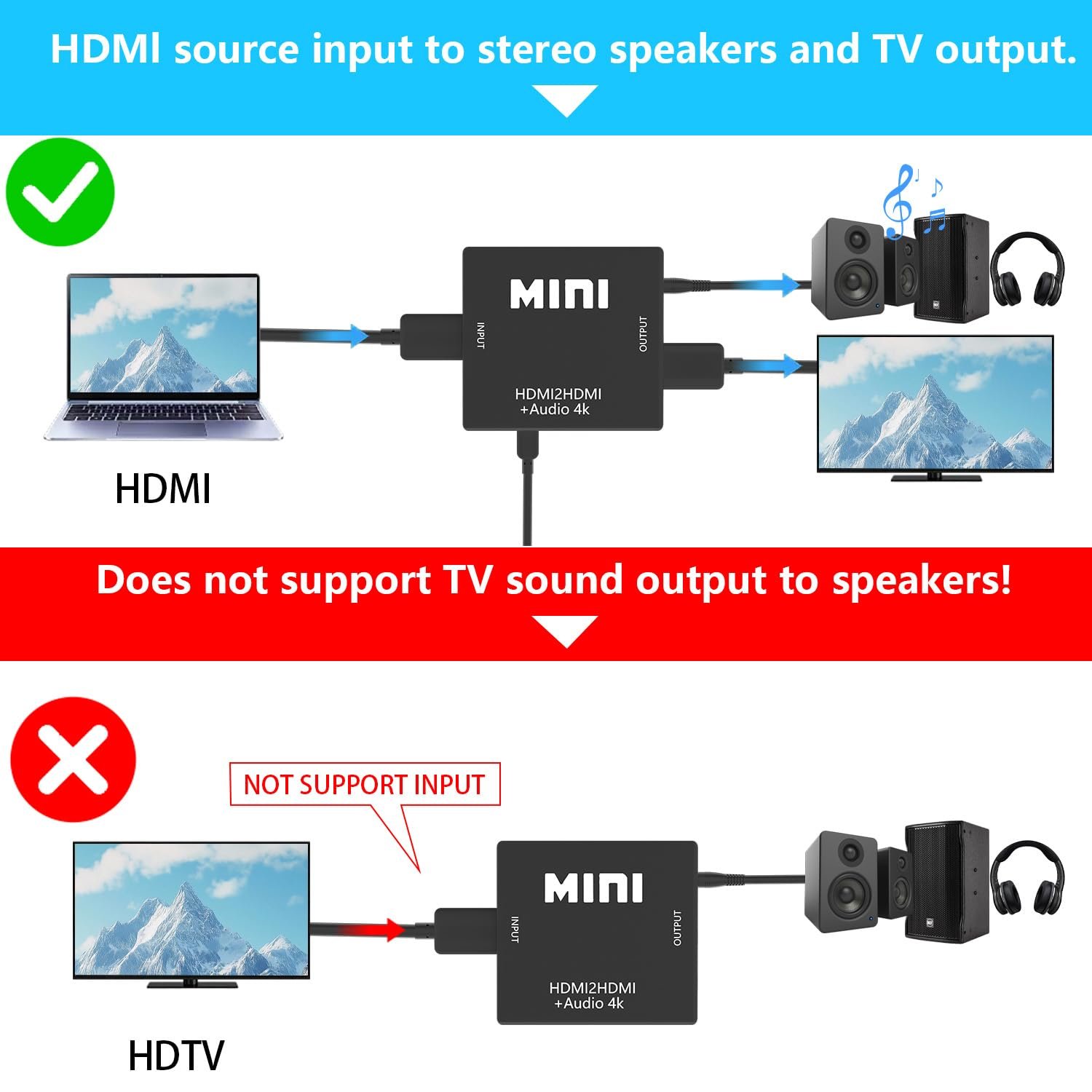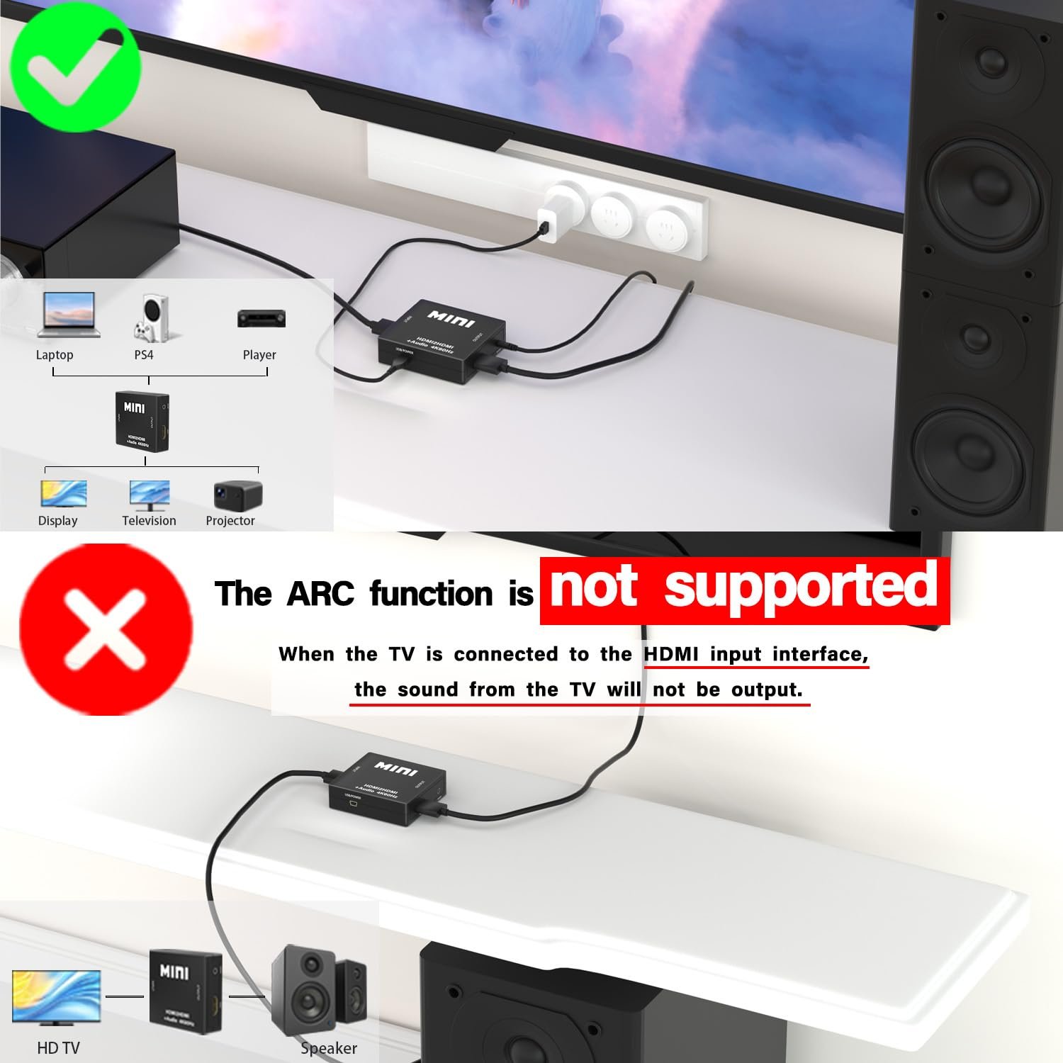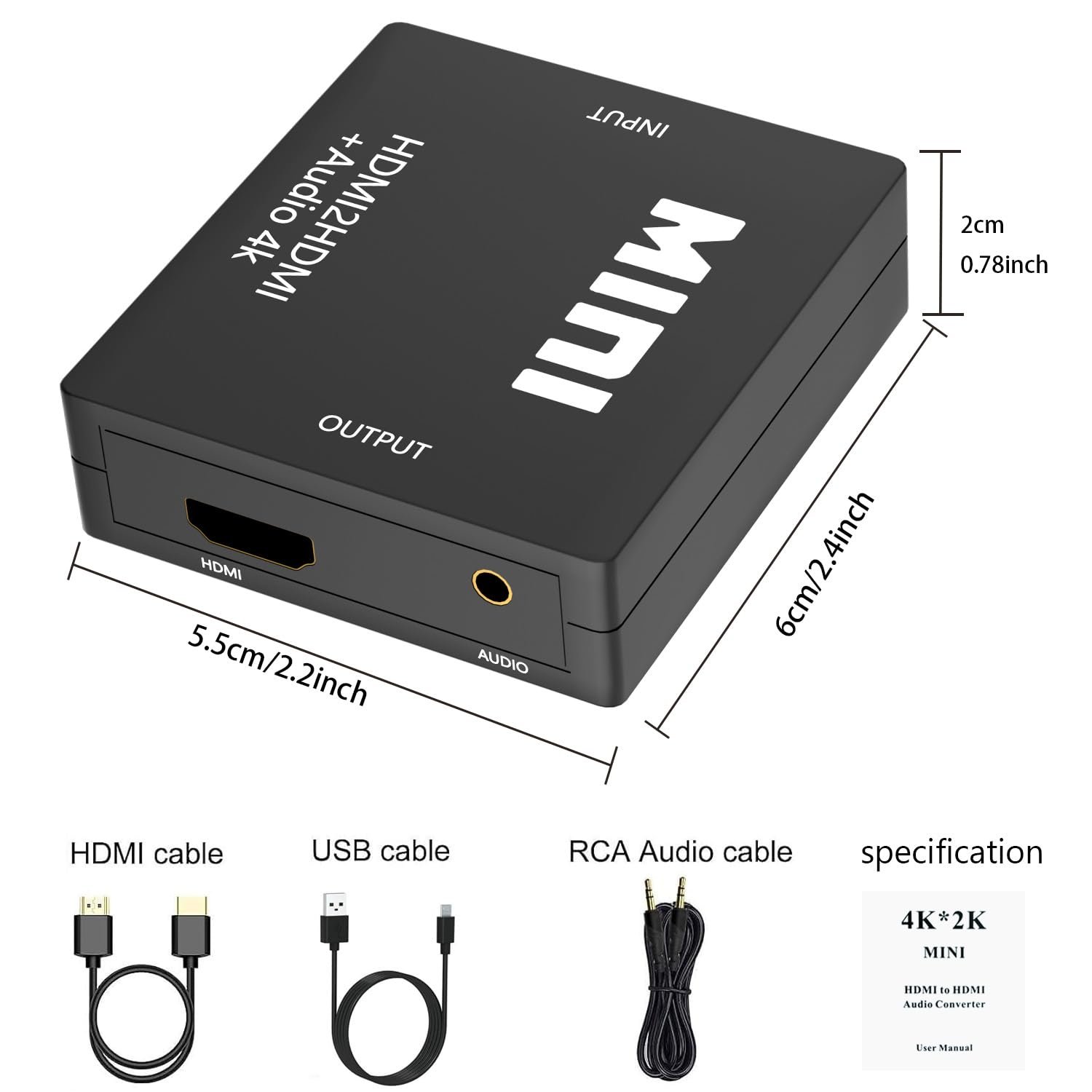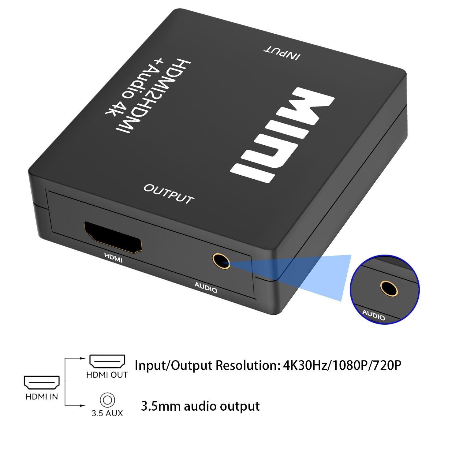 HDMI Audio Extractor Splitter,HDMI to 3.5mm Audio Adapter, 4K*2K@30HZ, 3D, 1080P Compatible for TV, PC, Sound System, Xbox, Switch, PS3, PS4, PS5
