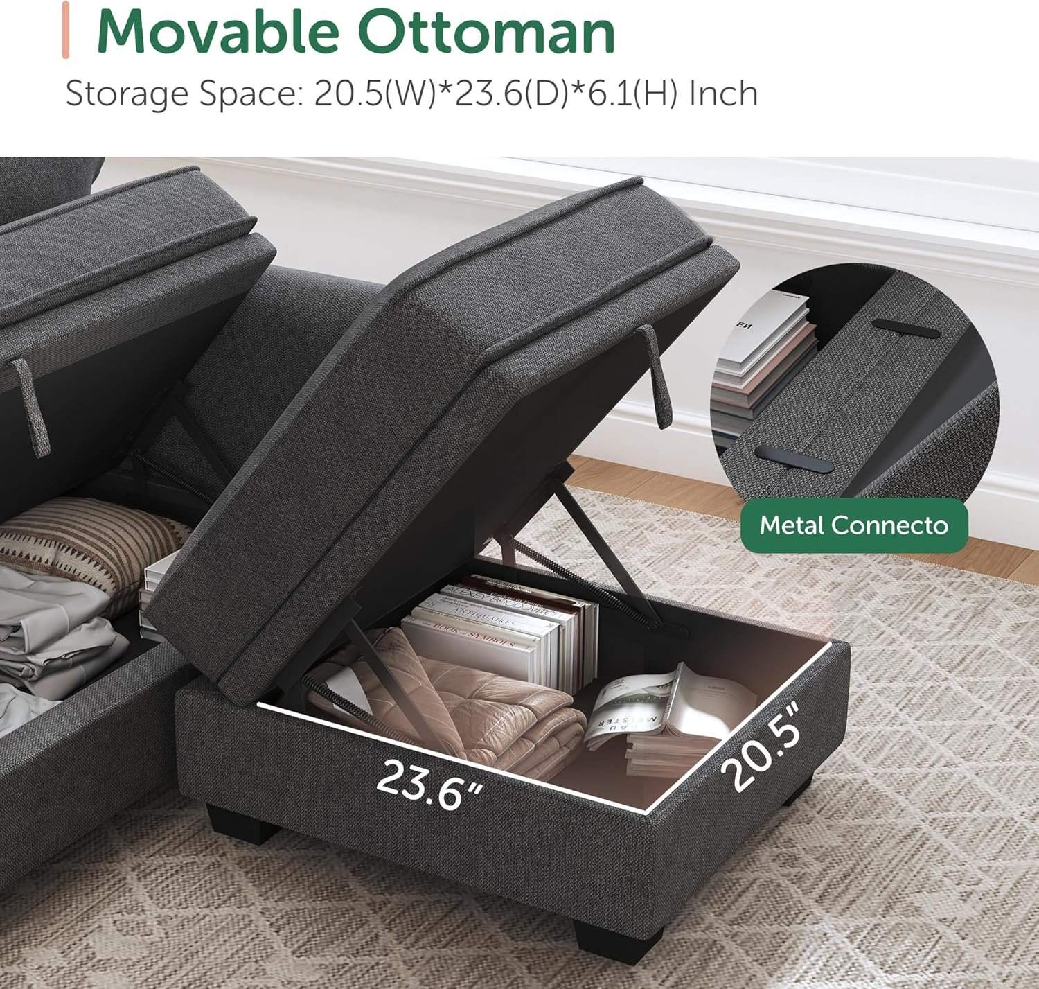 HONBAY Sectional Sofa with Storage Seat U Shaped Couch with Reversible Chaise Convertible Sectional Couches for Living Room,Dark Grey