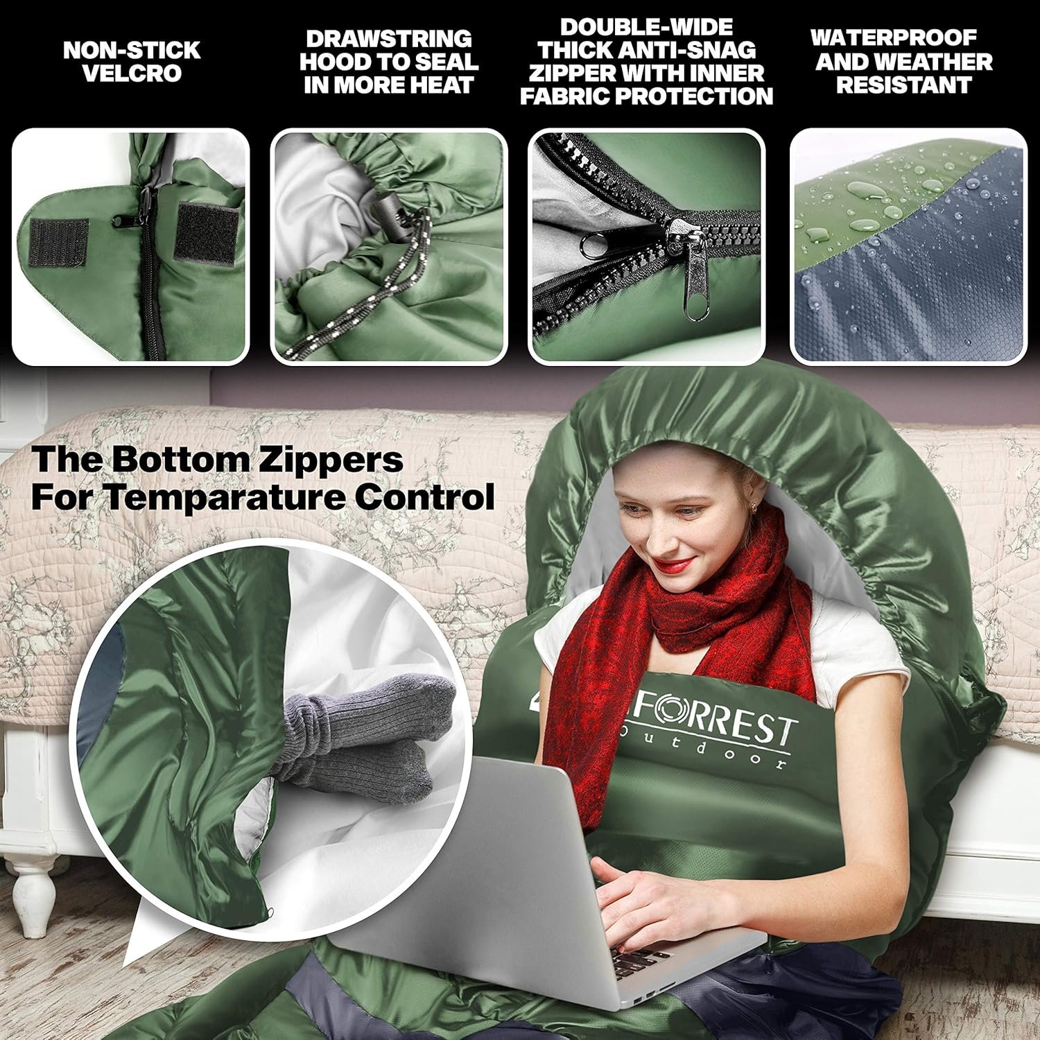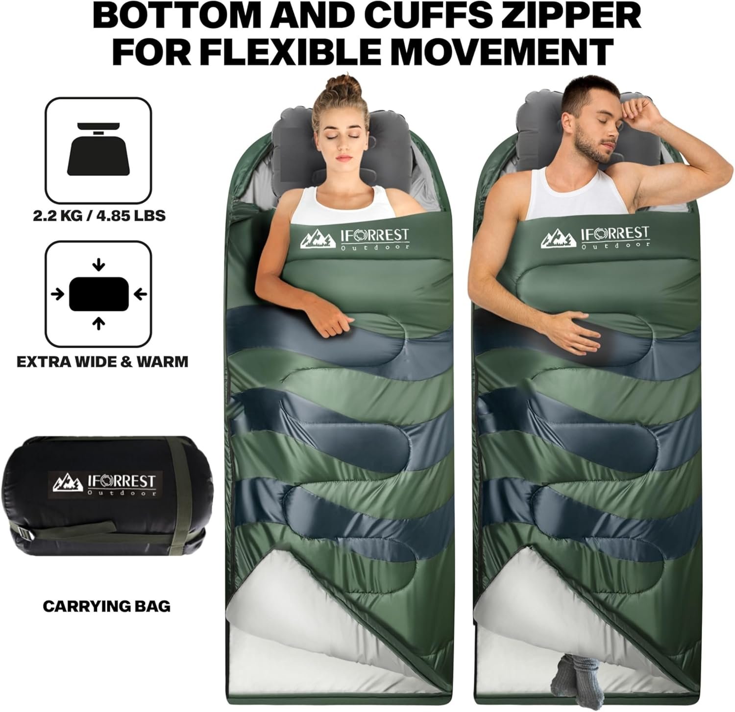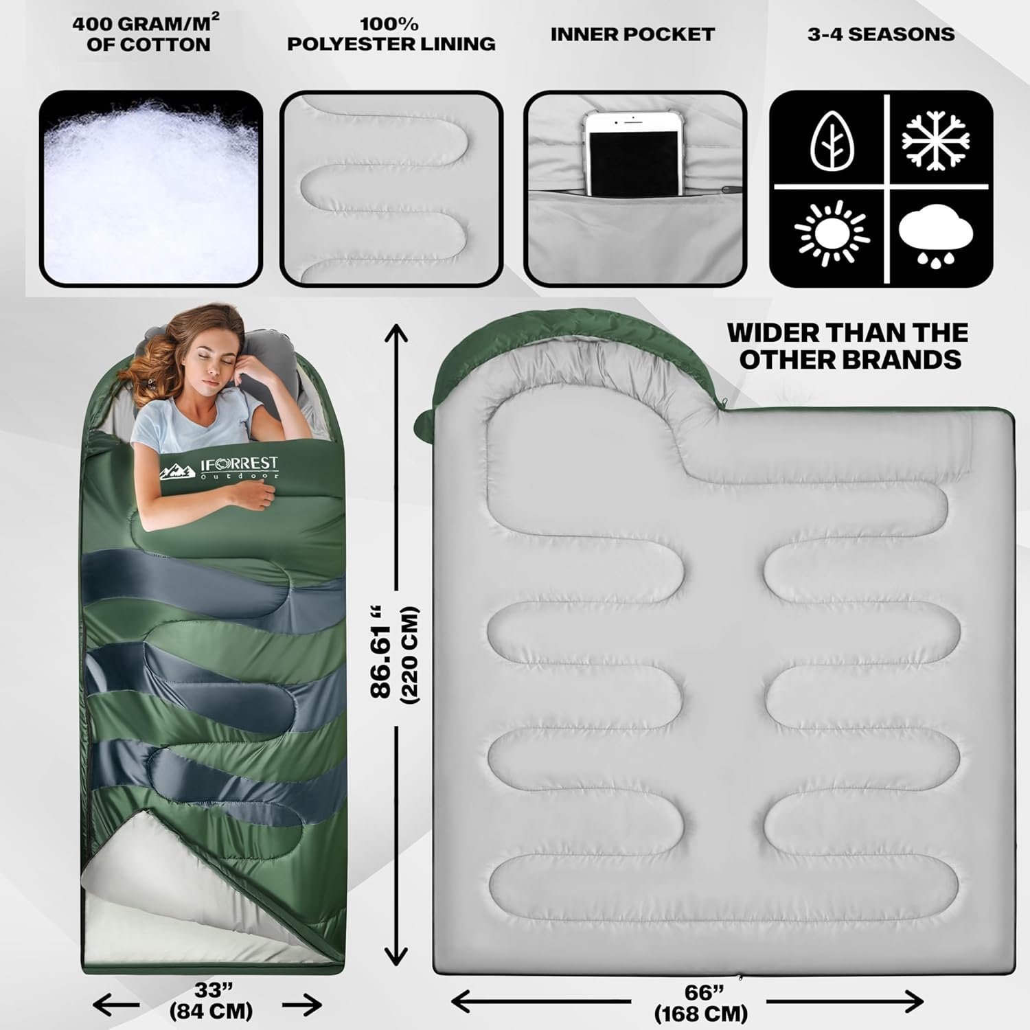 IFORREST Sleeping Bag – Single-Person Cold Weather Camping Sleep Bag for Adults and Teens – XXL 33in/ 40″ – Extra-Wide & Warm for Big & Tall – All-Season Comfort