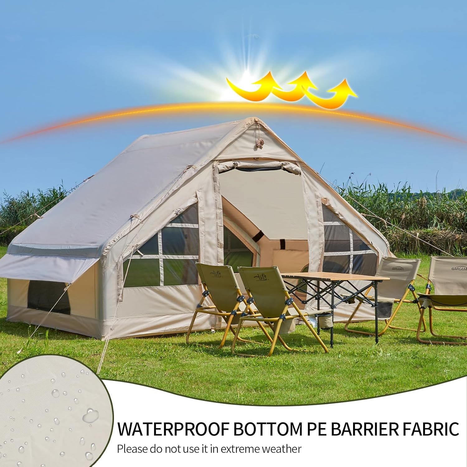 Inflatable Tents for Camping with Stove Jack, 4/6/8 Person Easy Setup Blow Up Tents for 4 Seasons Waterproof Inflatable Hot Tent, Air Glamping Tent