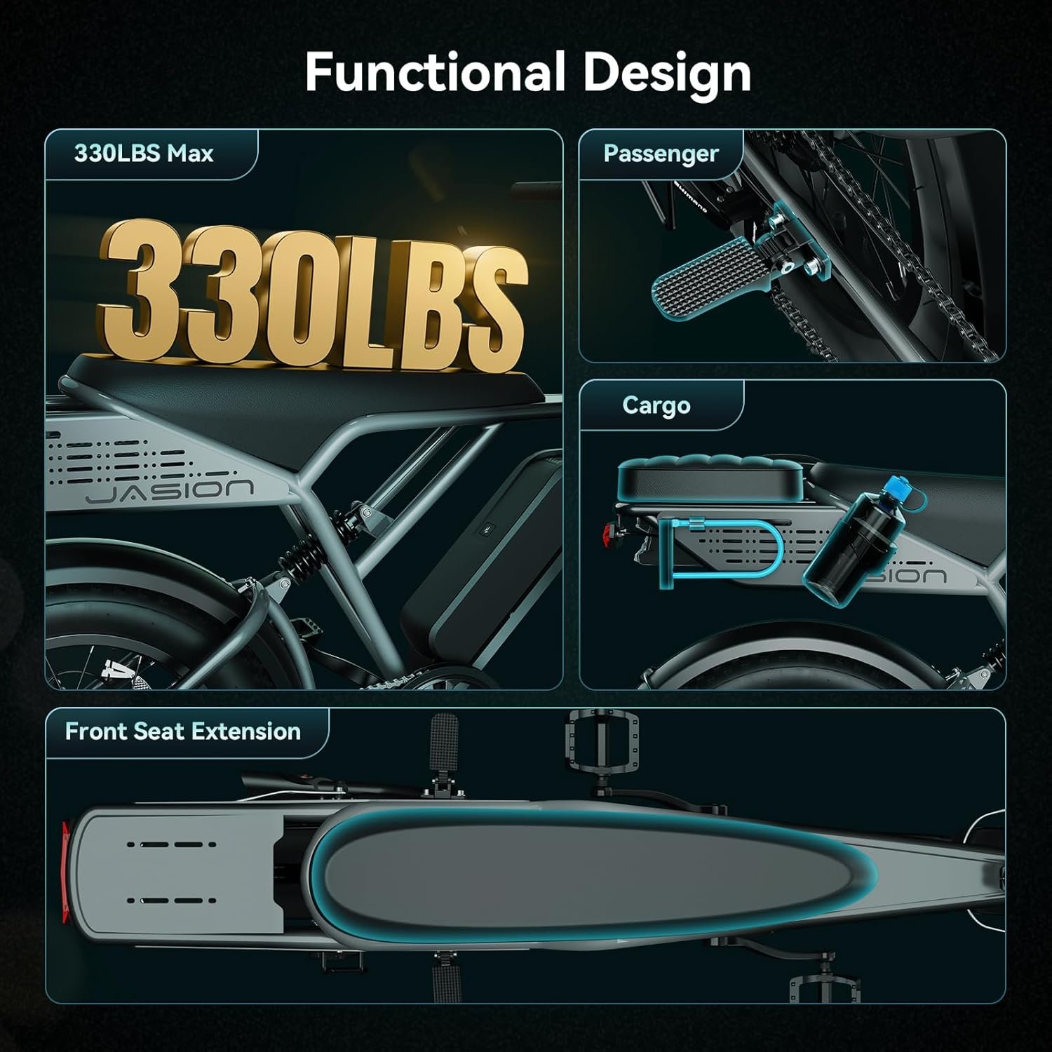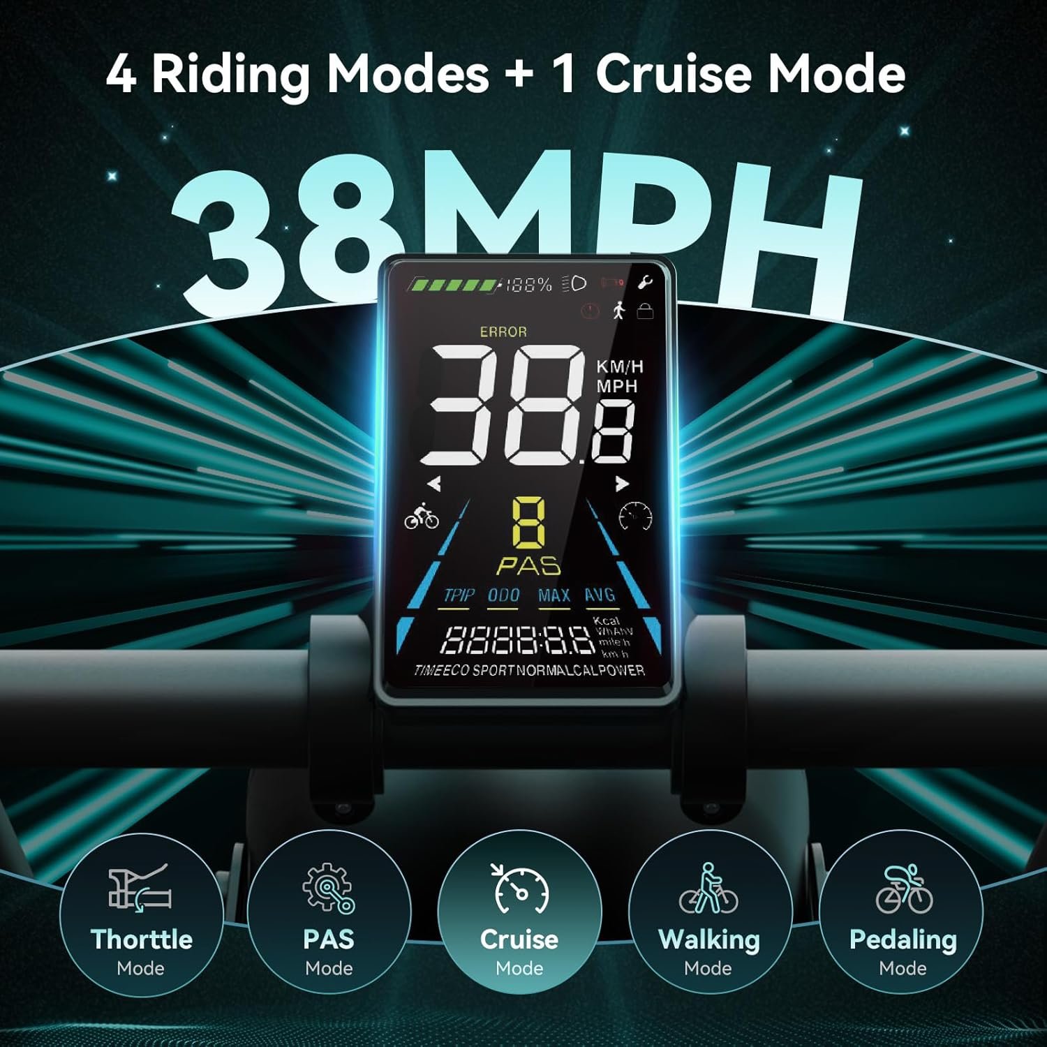 Jasion Thunder Electric Bike, 1500W Peak Motor, 30+MPH Max Speed & 80 Miles with 486Wh Removable Battery, APP Control Ebike for Adults, Hydraulic Brakes, Front Suspension, 26” x 4” Fat Tire Bicycles